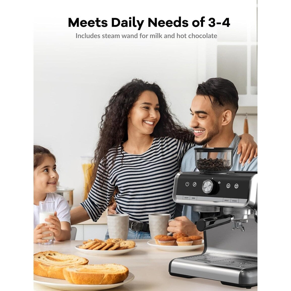 20 Bar Semi Automatic Espresso Machine With Grinder and Milk Frother Wand