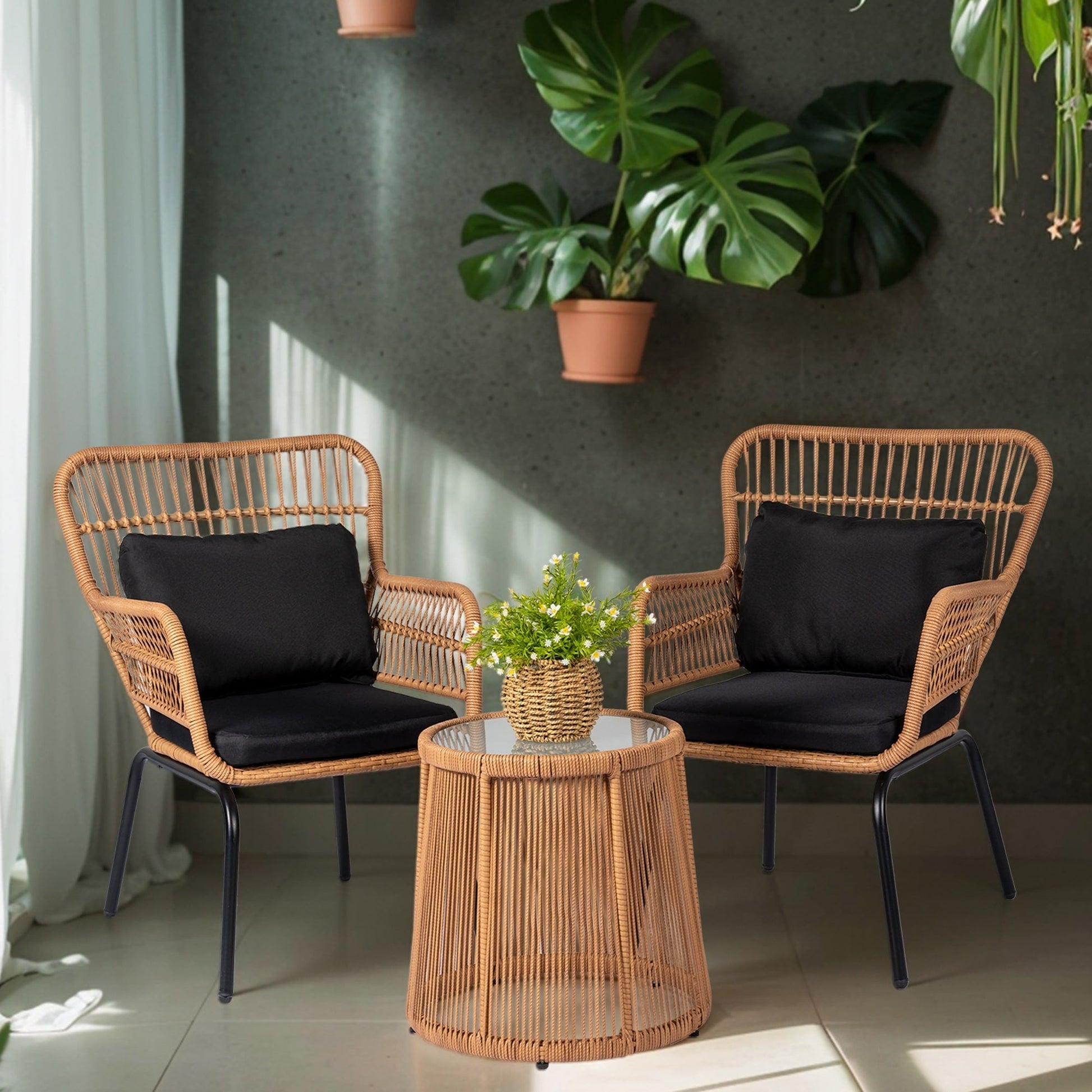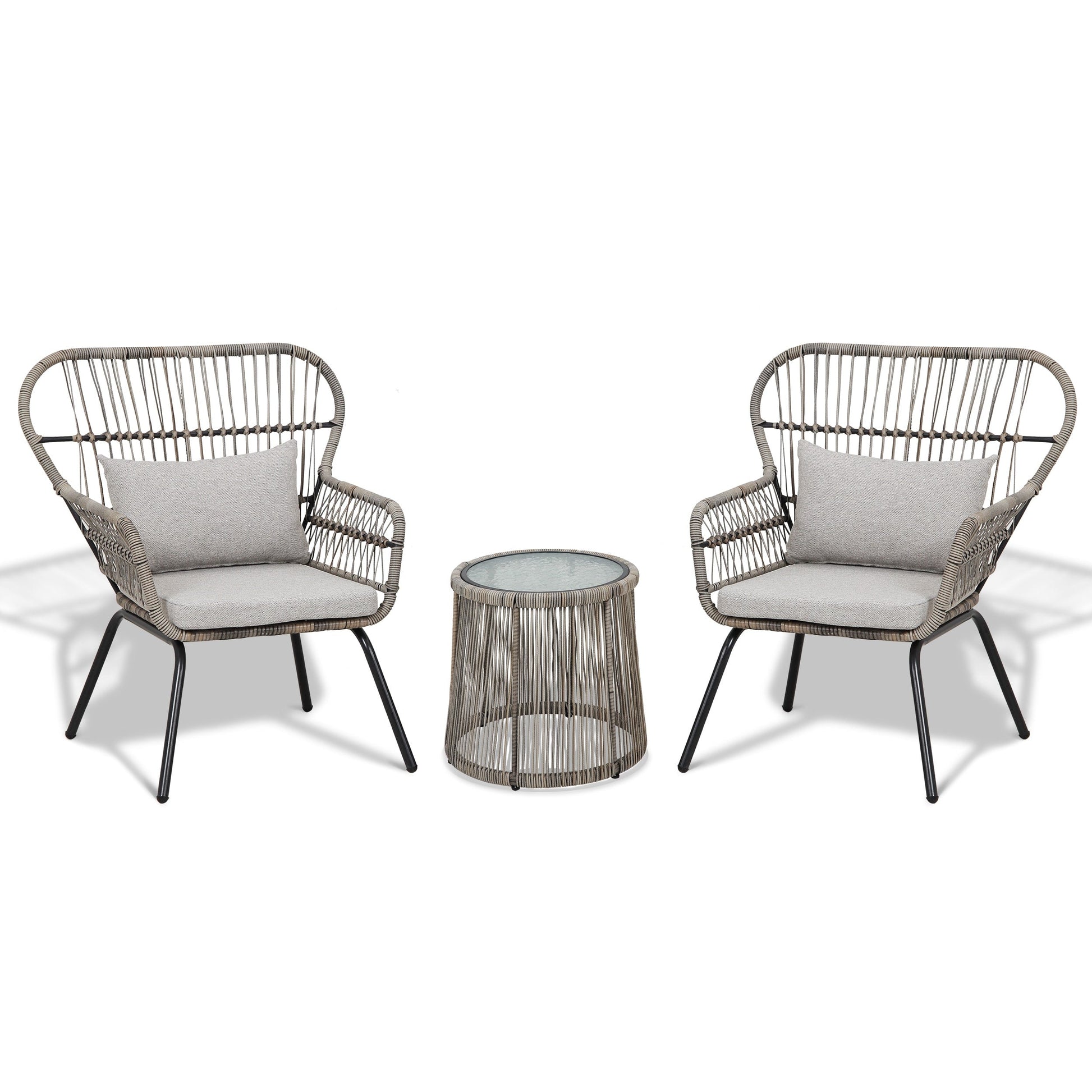 • 3 Piece Outdoor Wicker Conversation Bistro Set, All-Weather Rattan Furniture Patio Chairs Set with Table for Balcony, Garden Porch Backyard,