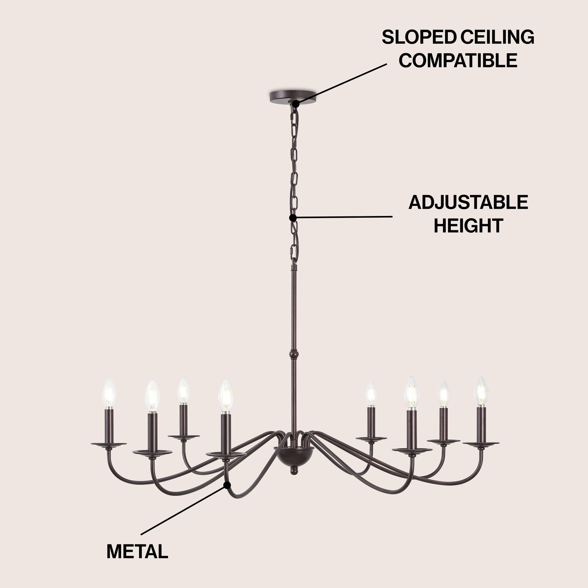 Based on historic wrought iron chandeliers, our rustic 6-light design features a quality finish. Perfectly sized for a farmhouse dining room, tall entry, or great room with high ceilings, our chandelier is just under 35' wide and features tall candles with LED candle bulbs. Use this versatile chandelier in a modern farmhouse, French country or Tuscan style home, or to add character to a rustic, industrial space.