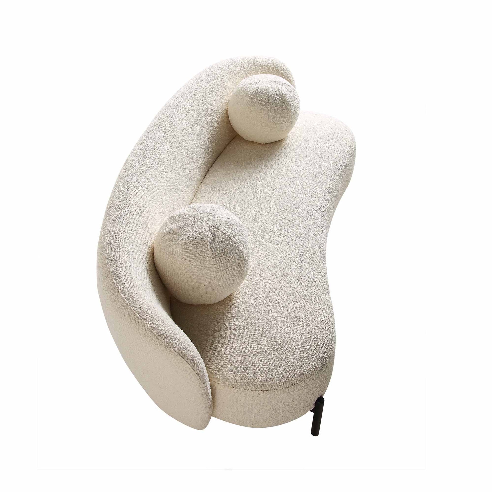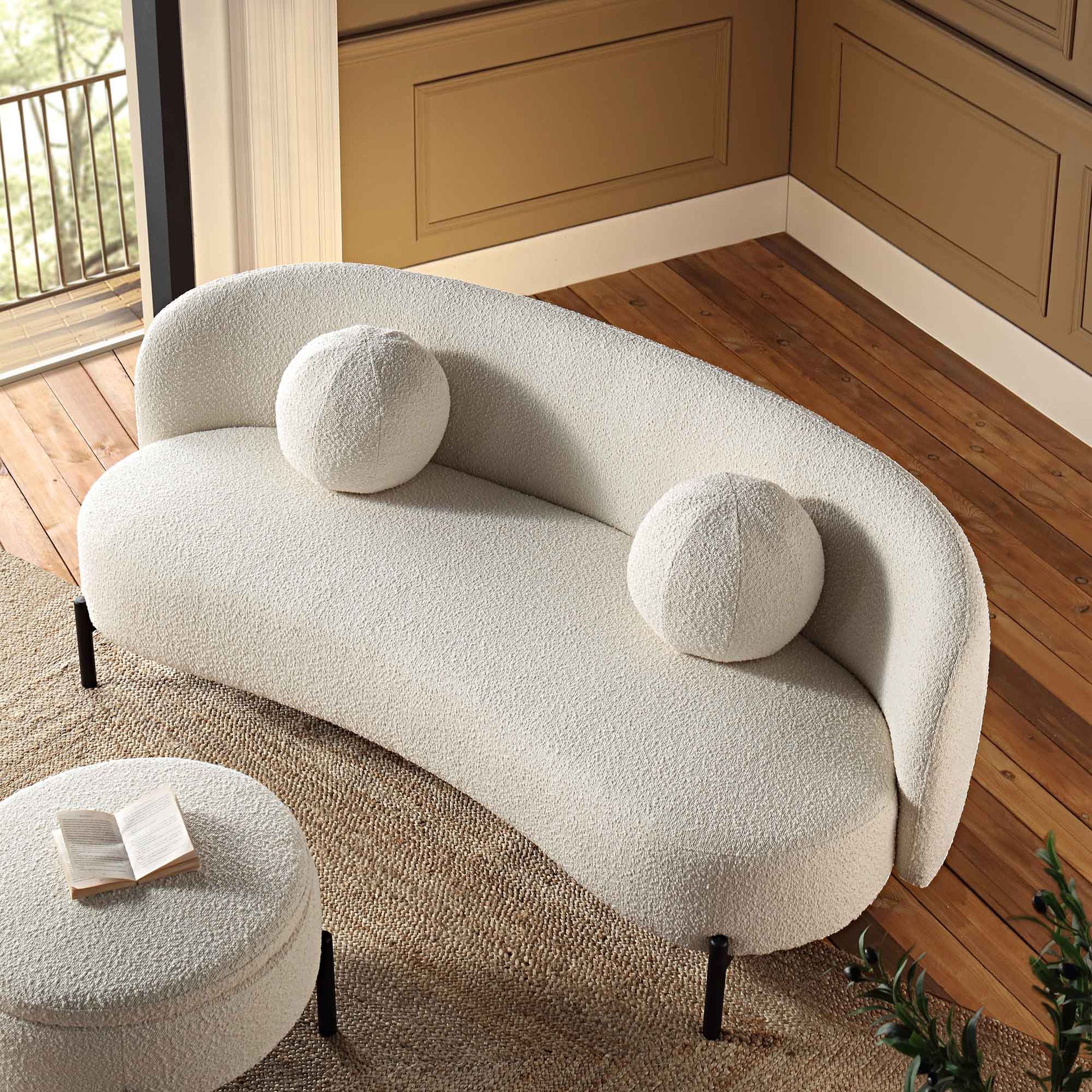 Amboise 3-Seater Curved Sofa with Ball Cushions, Ecru Boucle