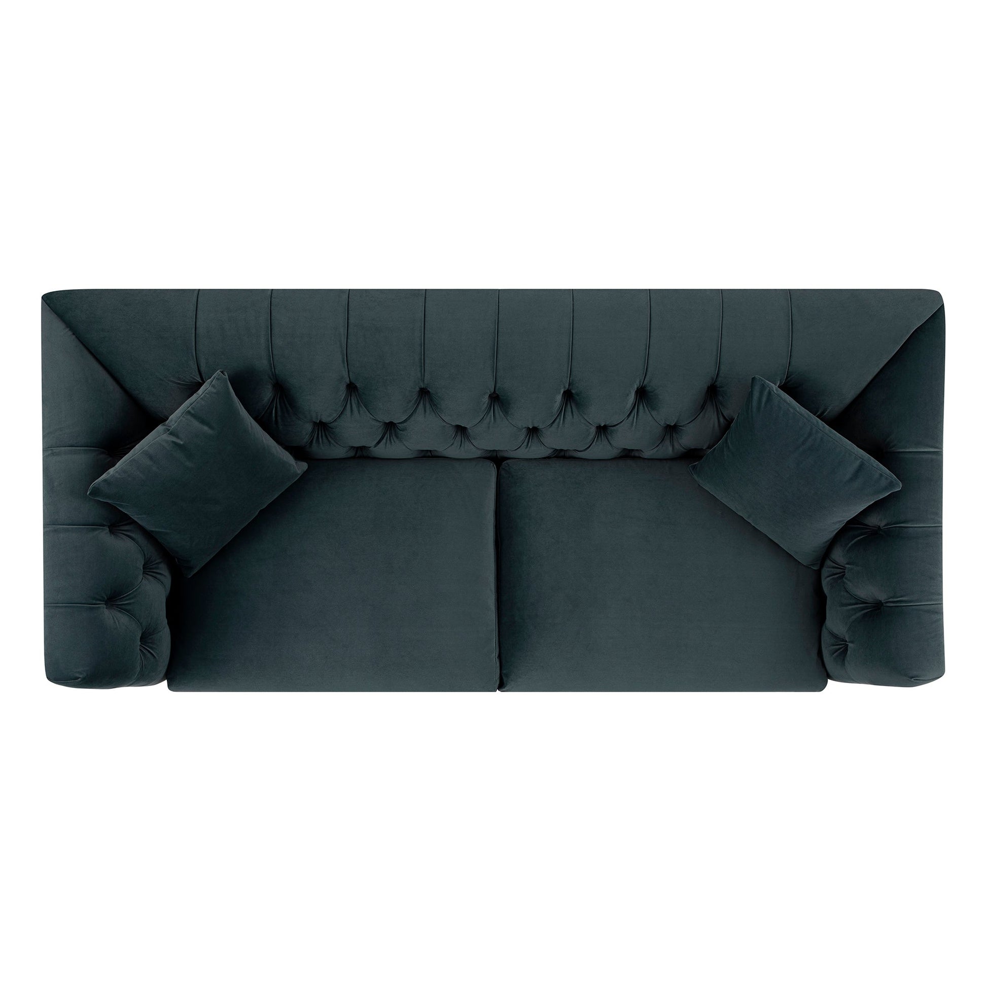 - Boasting opulent tufted back and arms, the sofa offers deep cushioned, supportive seat.