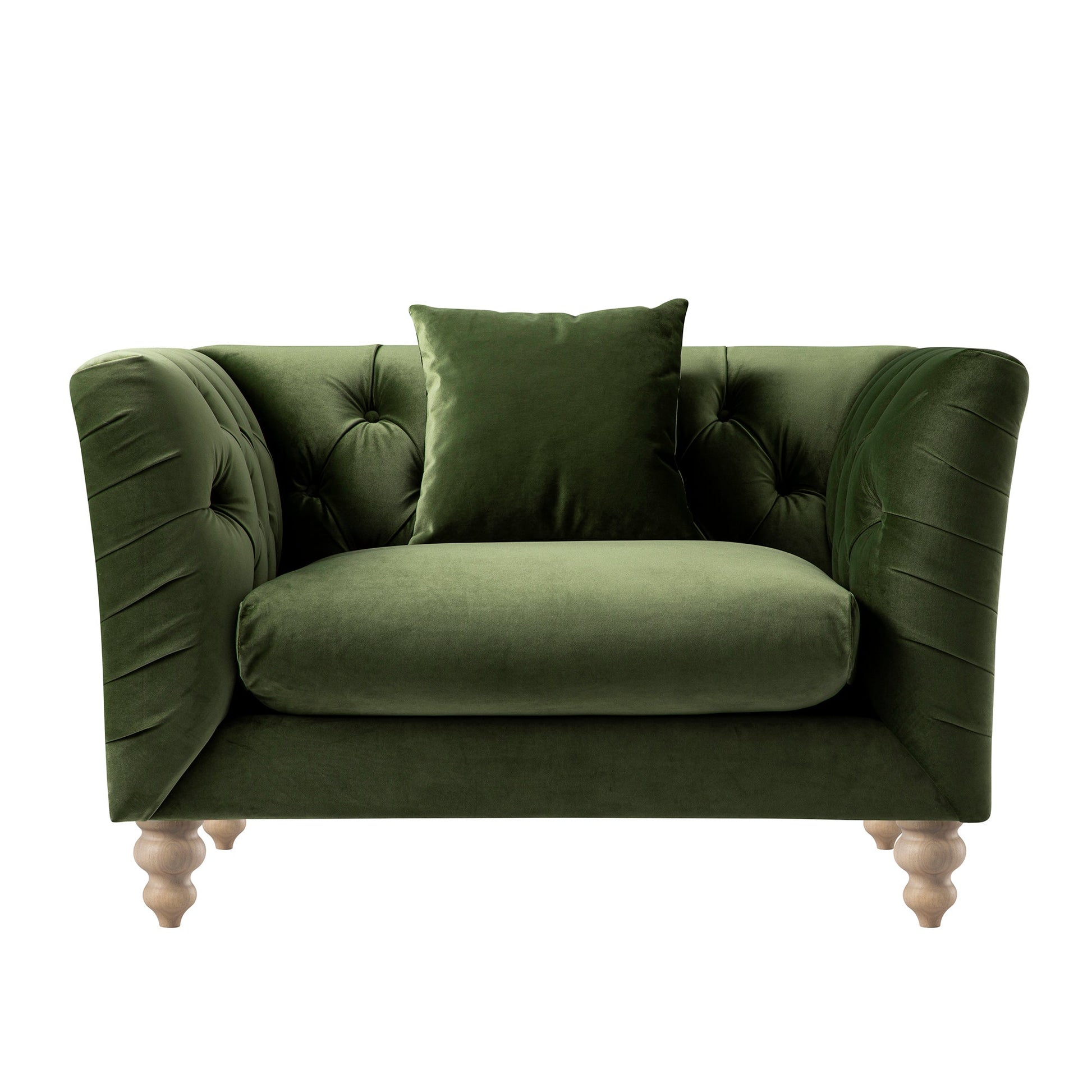 - Upholstered in sumptuous fern green velvet touch fabric.