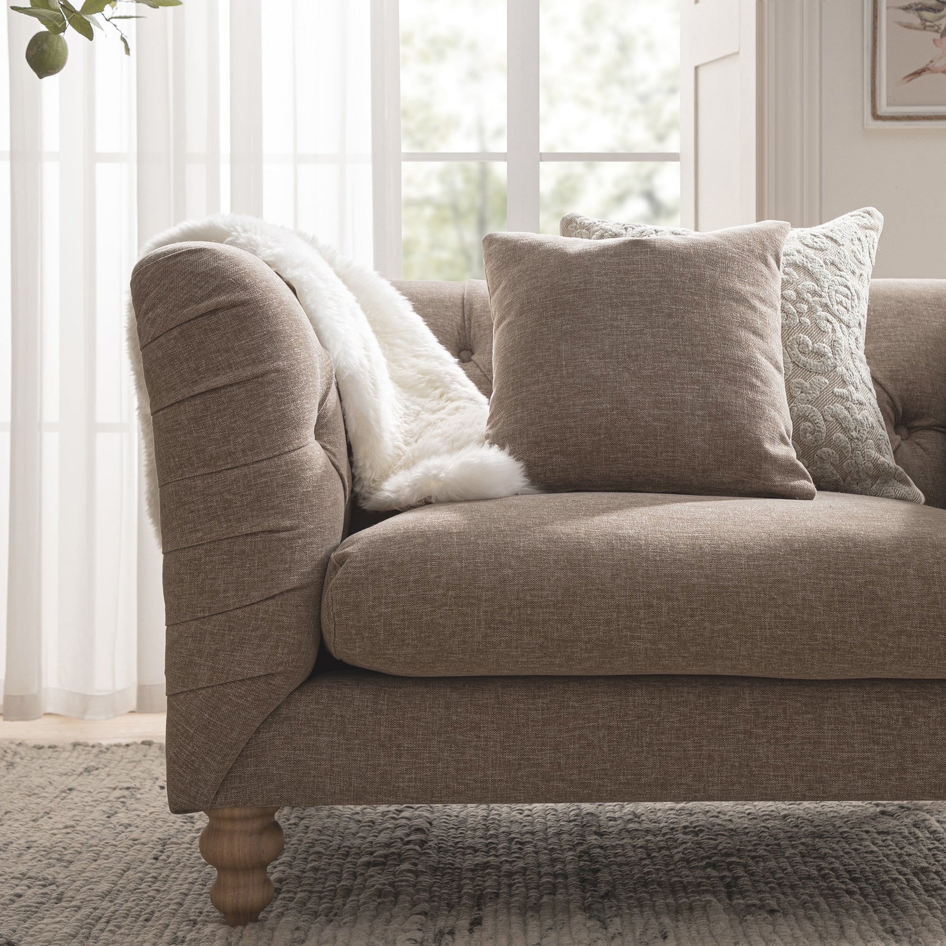 - Complete the look: Pictured with the Ashby Taupe Chenille Chesterfield Loveseat is our Indra Light Grey Handwoven Wool Rug and Bloomsbury Imperial Chenille Embroidered Cotton Cushion.