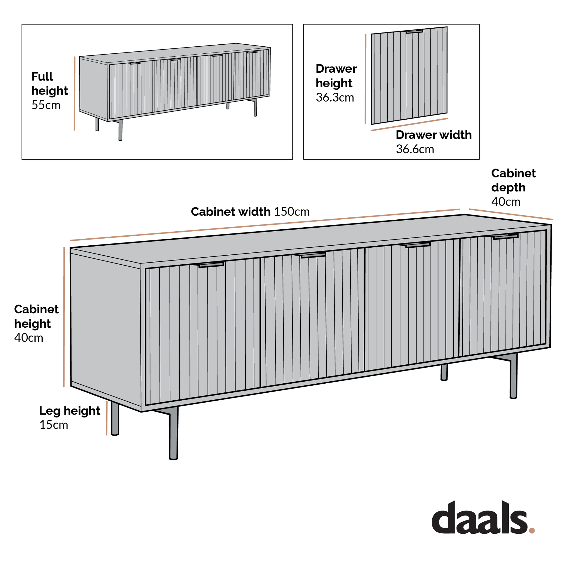 - Item size: W 150 x D 40 x H 55 cm.