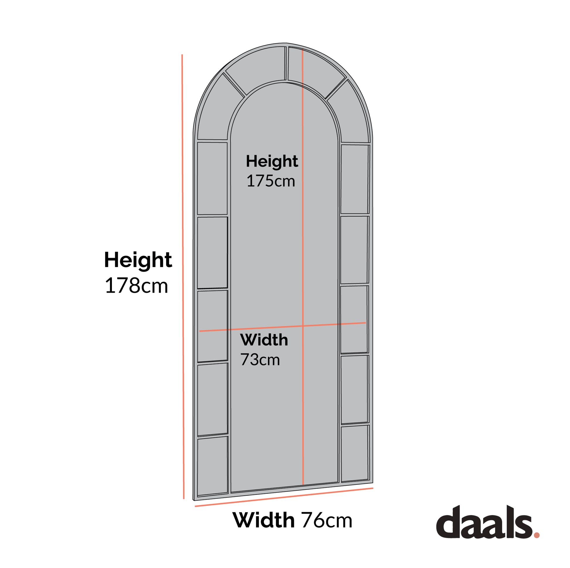 - Mirror size: H 175 x W 73 cm