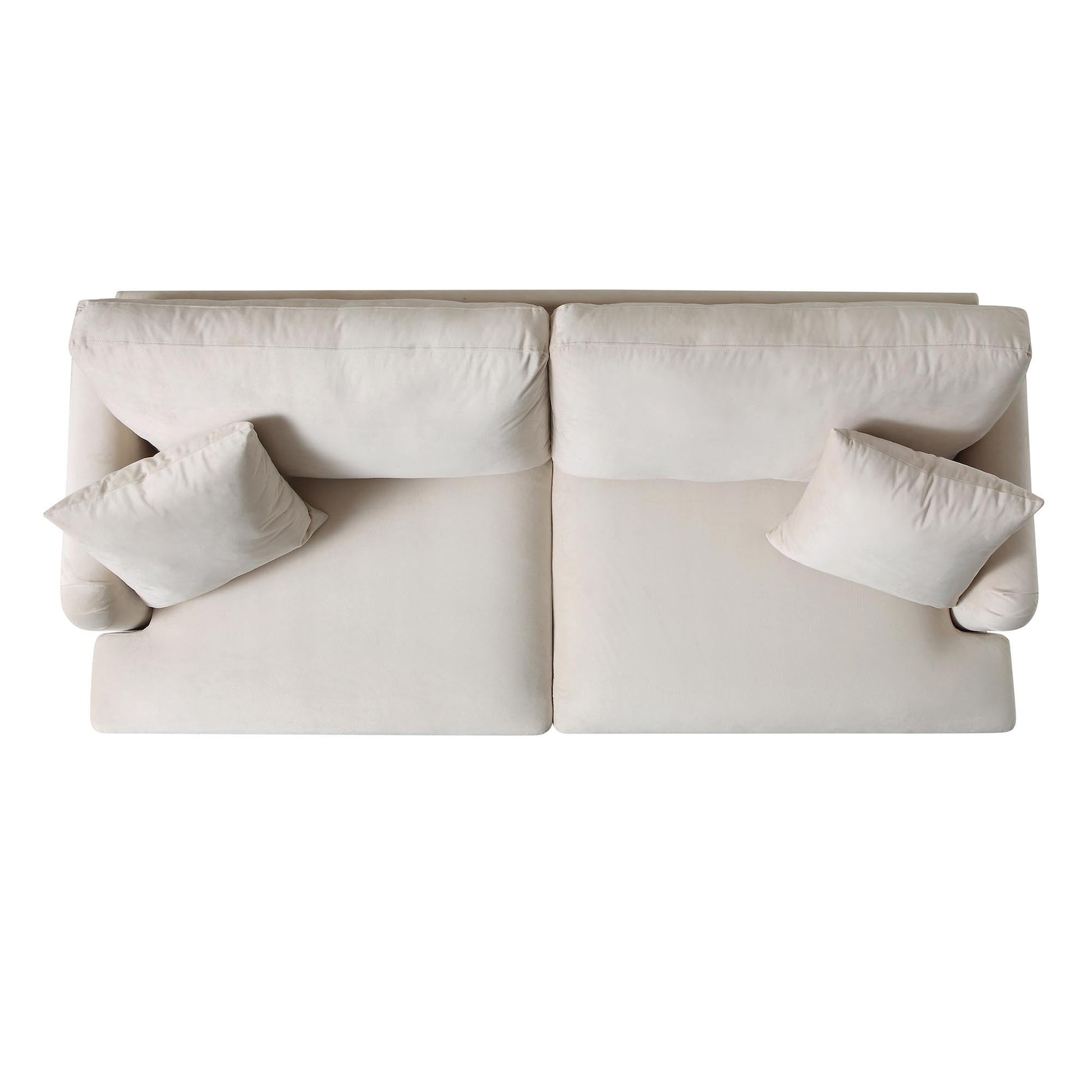 - Crafted from solid wood and metal frame, the cushions are filled with foam and upholstered with soft cosy velvet feel fabric in beige colour.