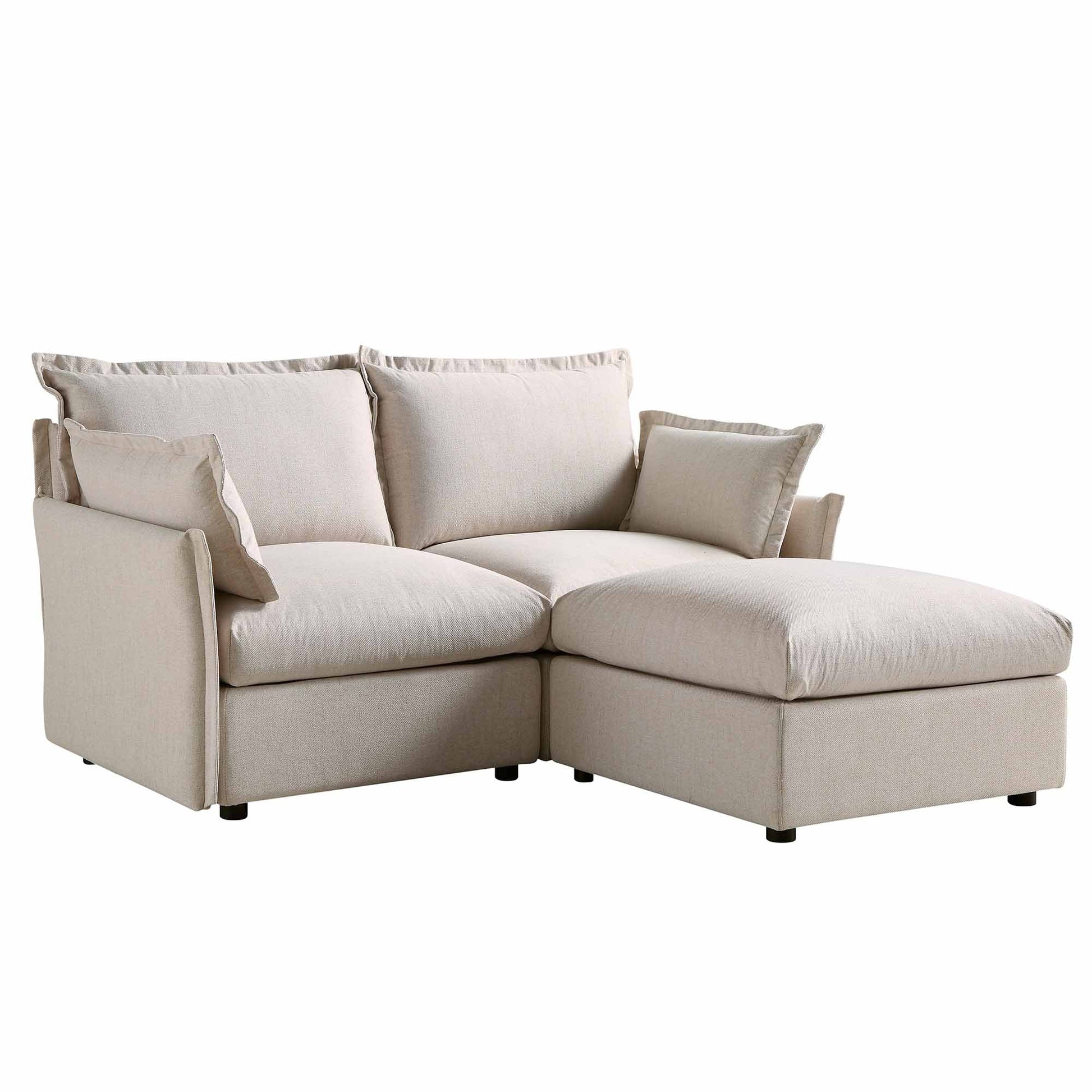 Byron Pillow Edge Beige Fabric Modular Sofa, 2-Seater Chaise