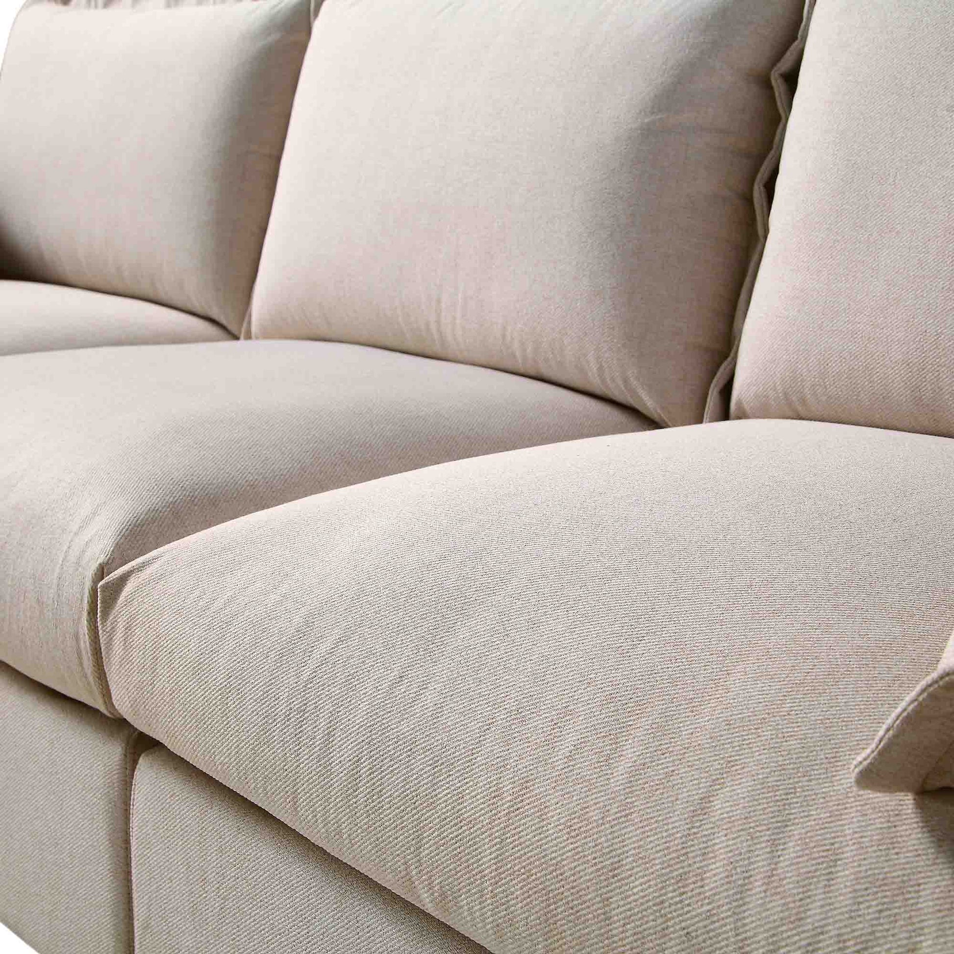 Byron Pillow Edge Beige Fabric Modular Sofa, 3-Seater