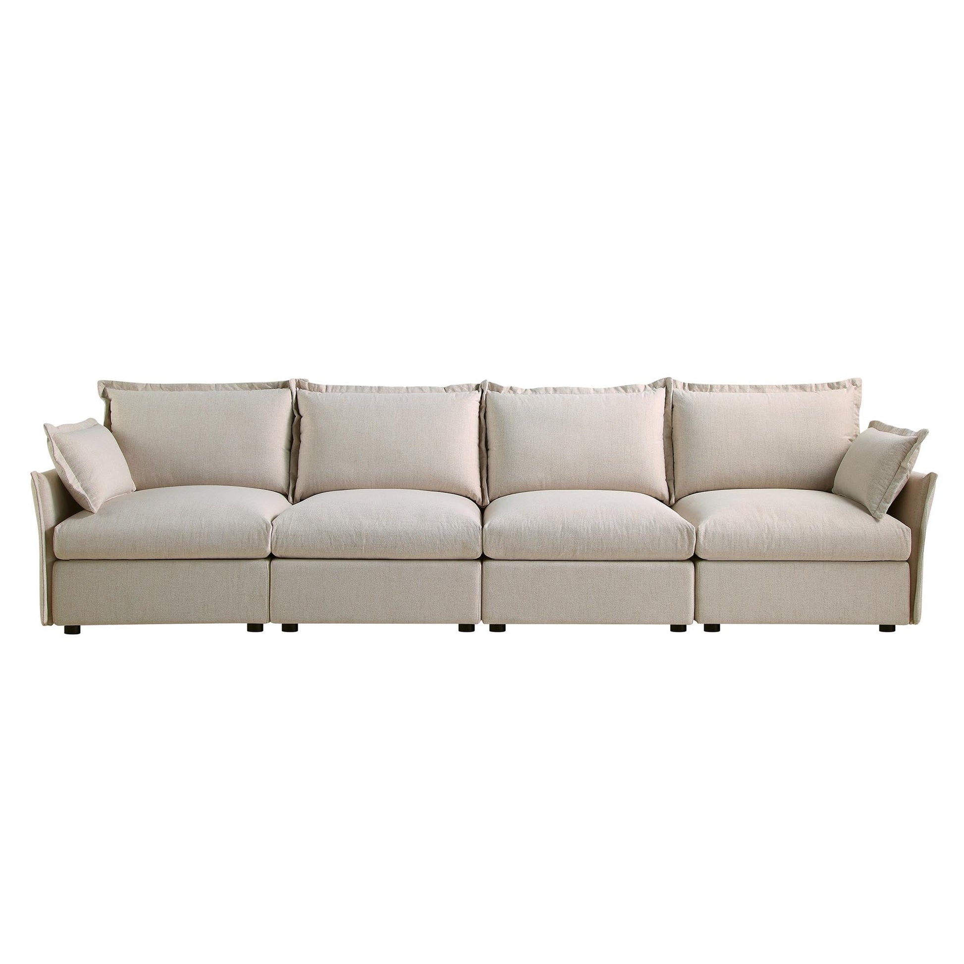 Byron Pillow Edge Beige Fabric Modular Sofa, 4-Seater