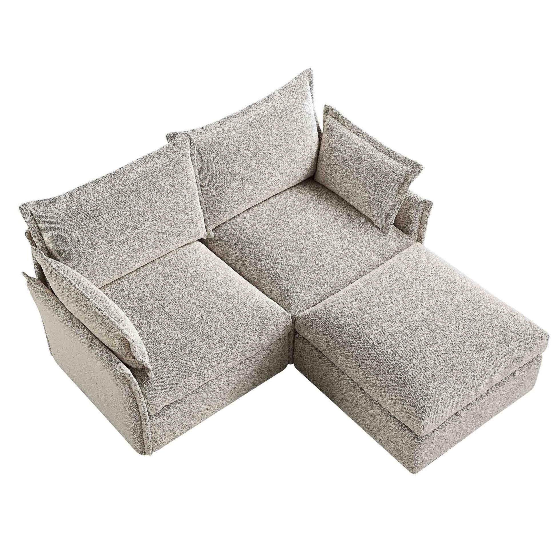 Byron Pillow Edge Mist Grey Boucle Modular Sofa, 2-Seater Chaise
