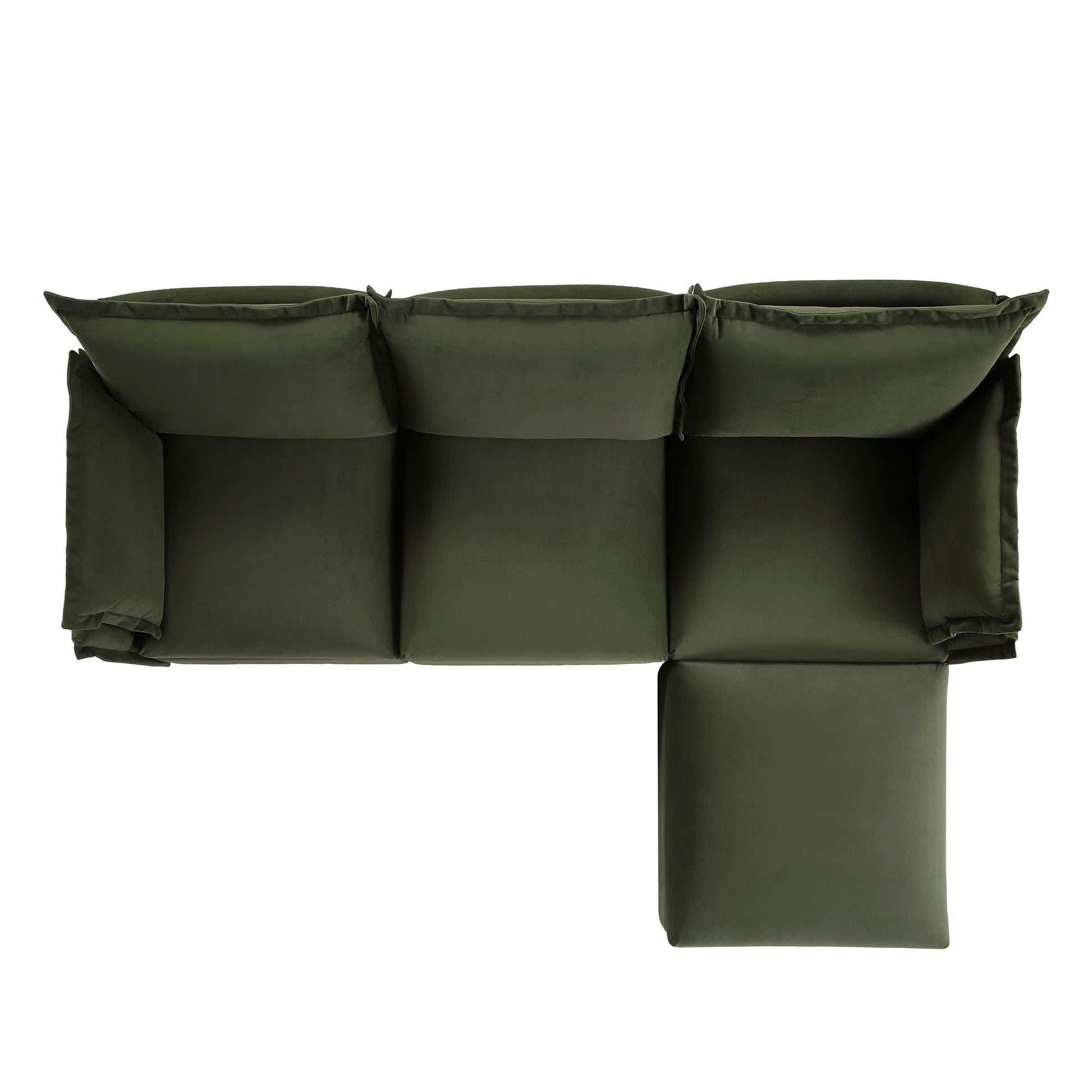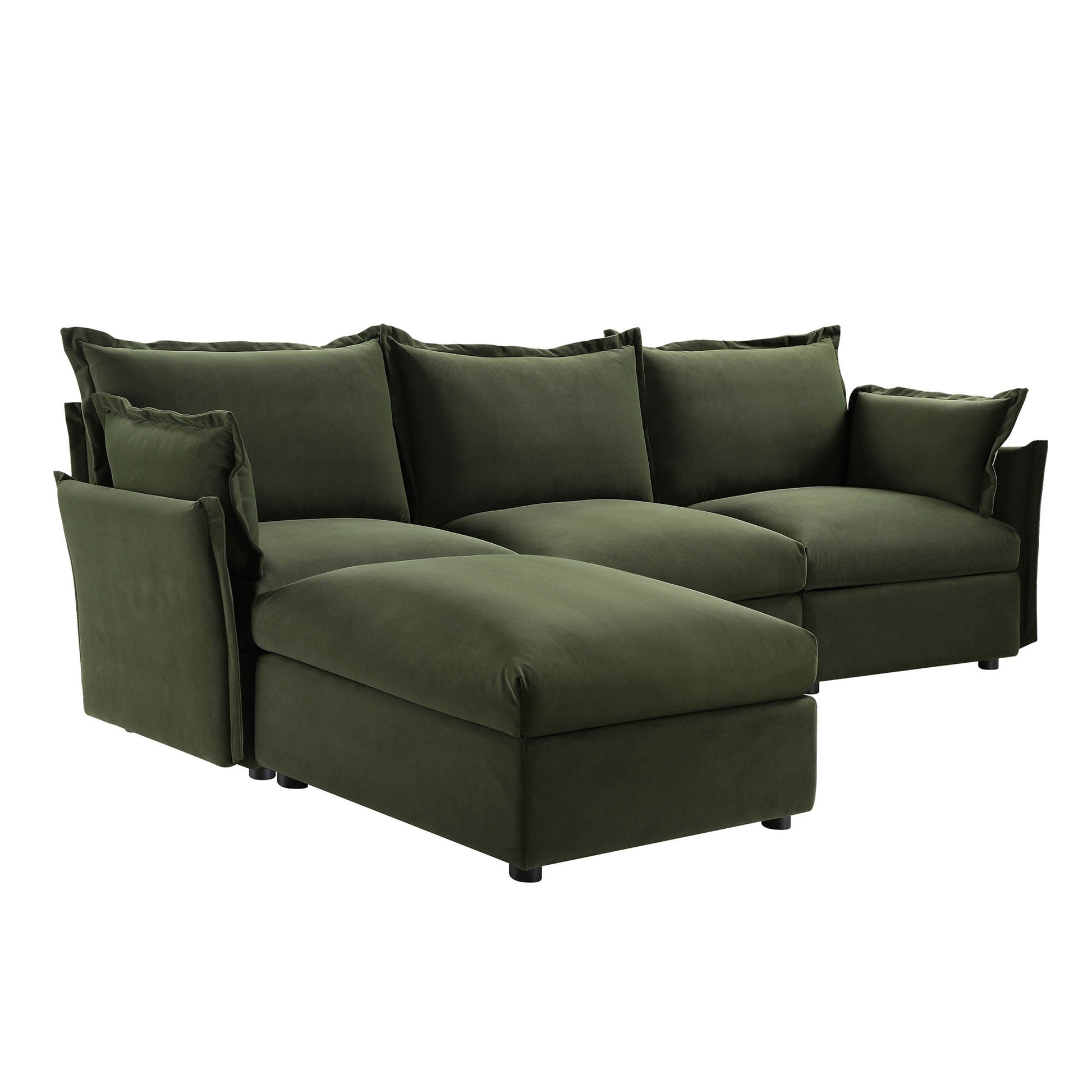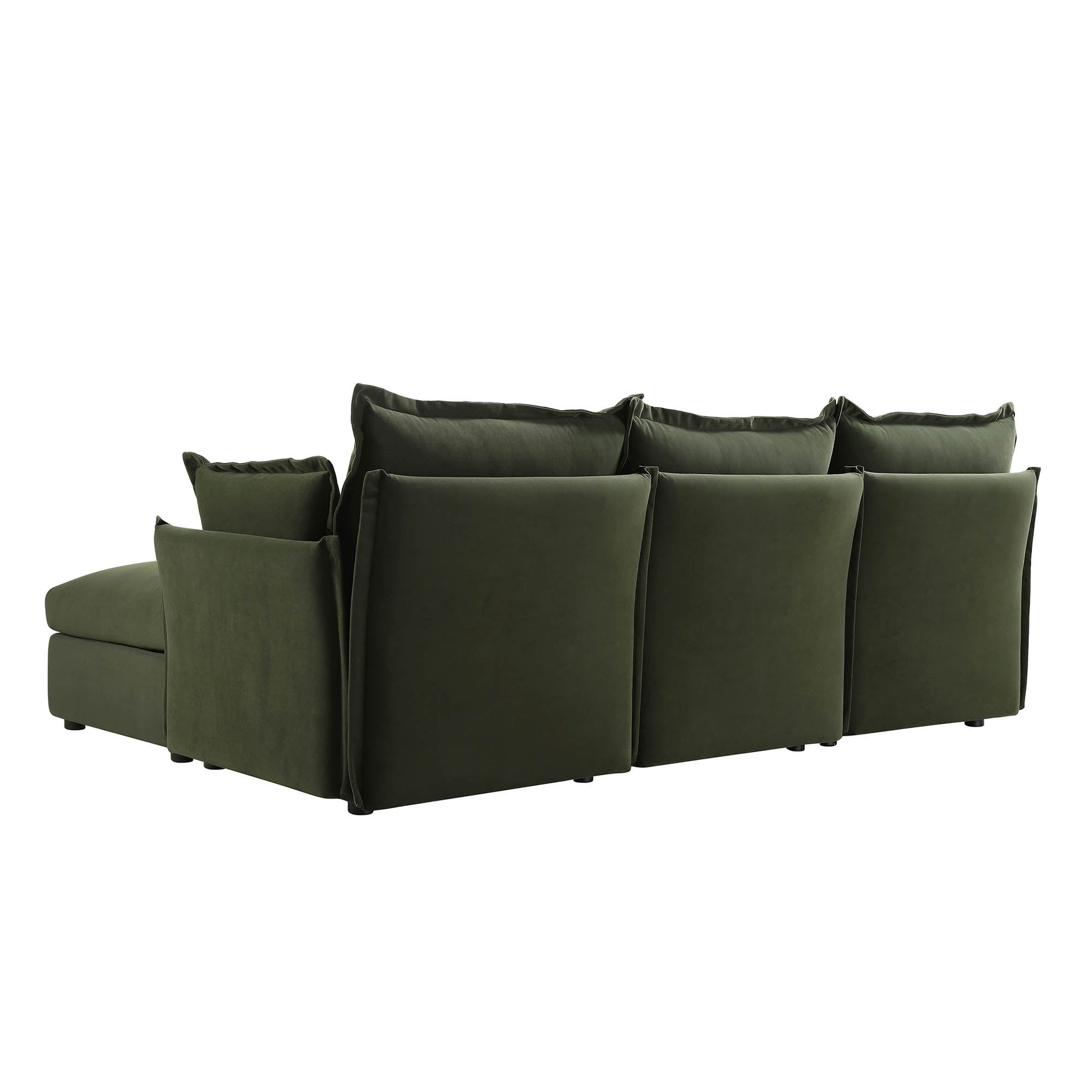 Byron Pillow Edge Moss Green Velvet Modular Sofa, 3-Seater Chaise