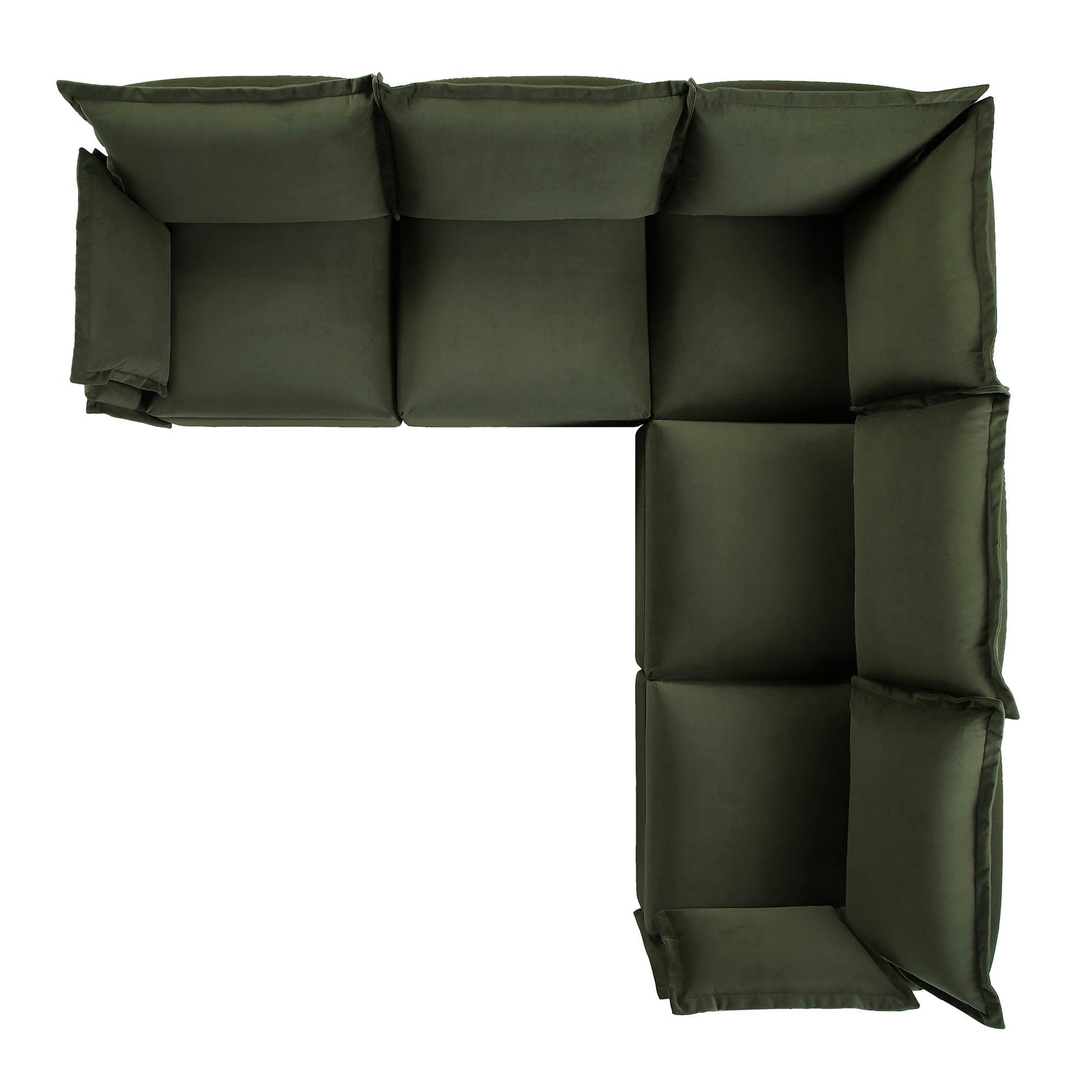 Byron Pillow Edge Moss Green Velvet Modular Sofa, 5-Seater Corner