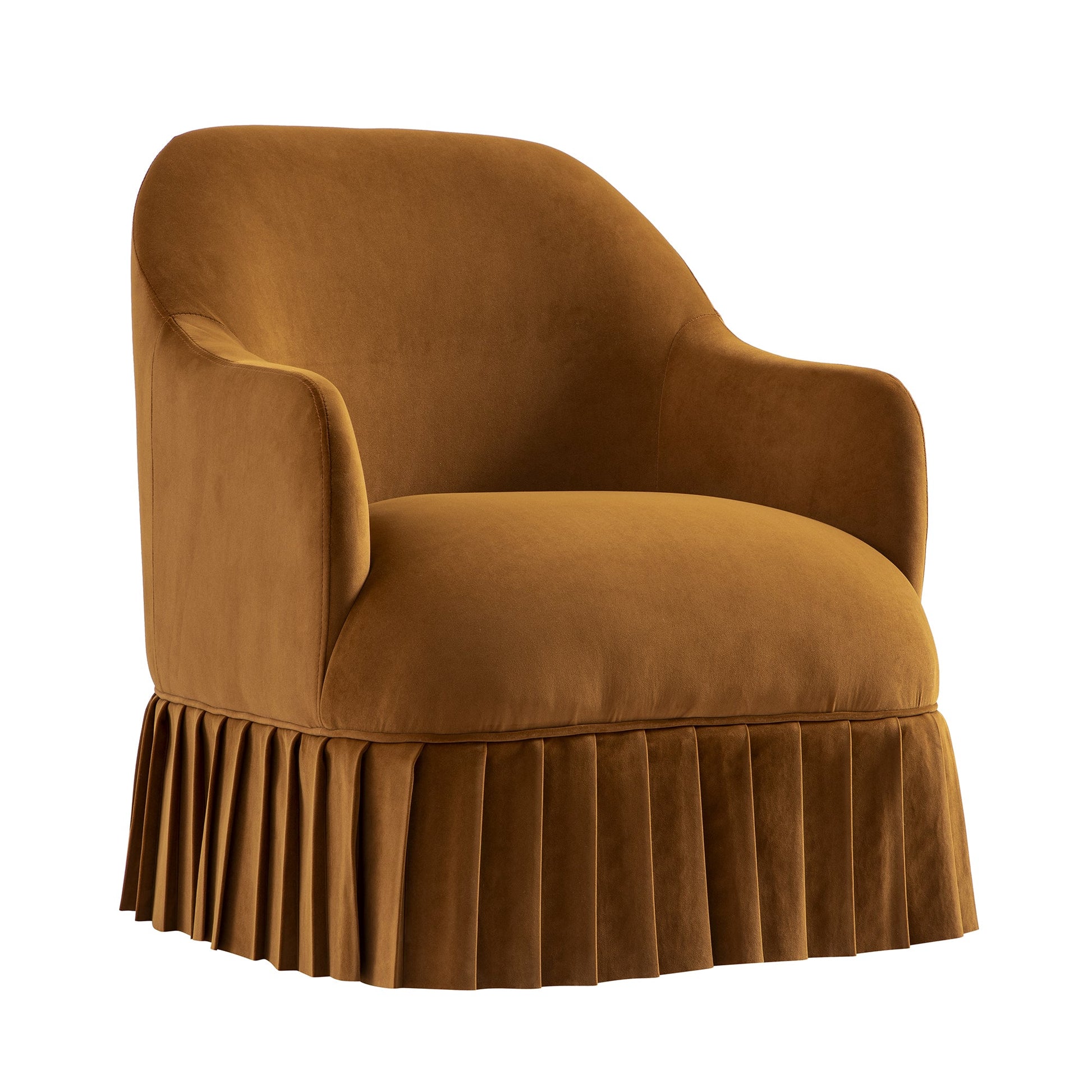 - Complete the look: Pictured with our Calliope Skirted Armchair is our Evie Linen Butterscotch Scalloped Rectangular Cushion and our Geo Curve Hand Tufted New Zealand Wool Rug