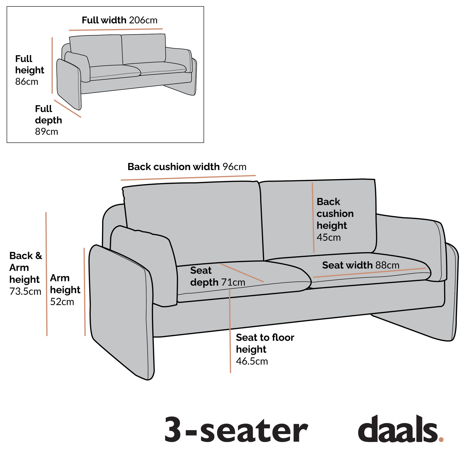 - 3-Seater sofa size: W 206 x D 89 x H 86 cm.