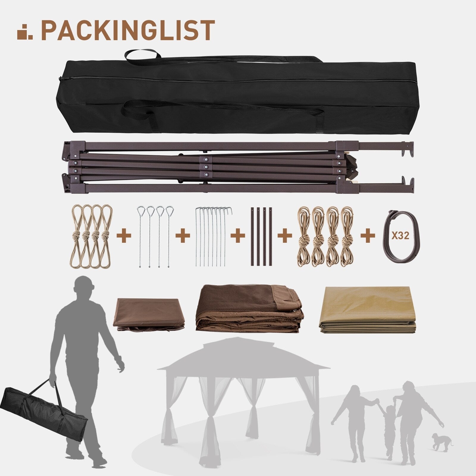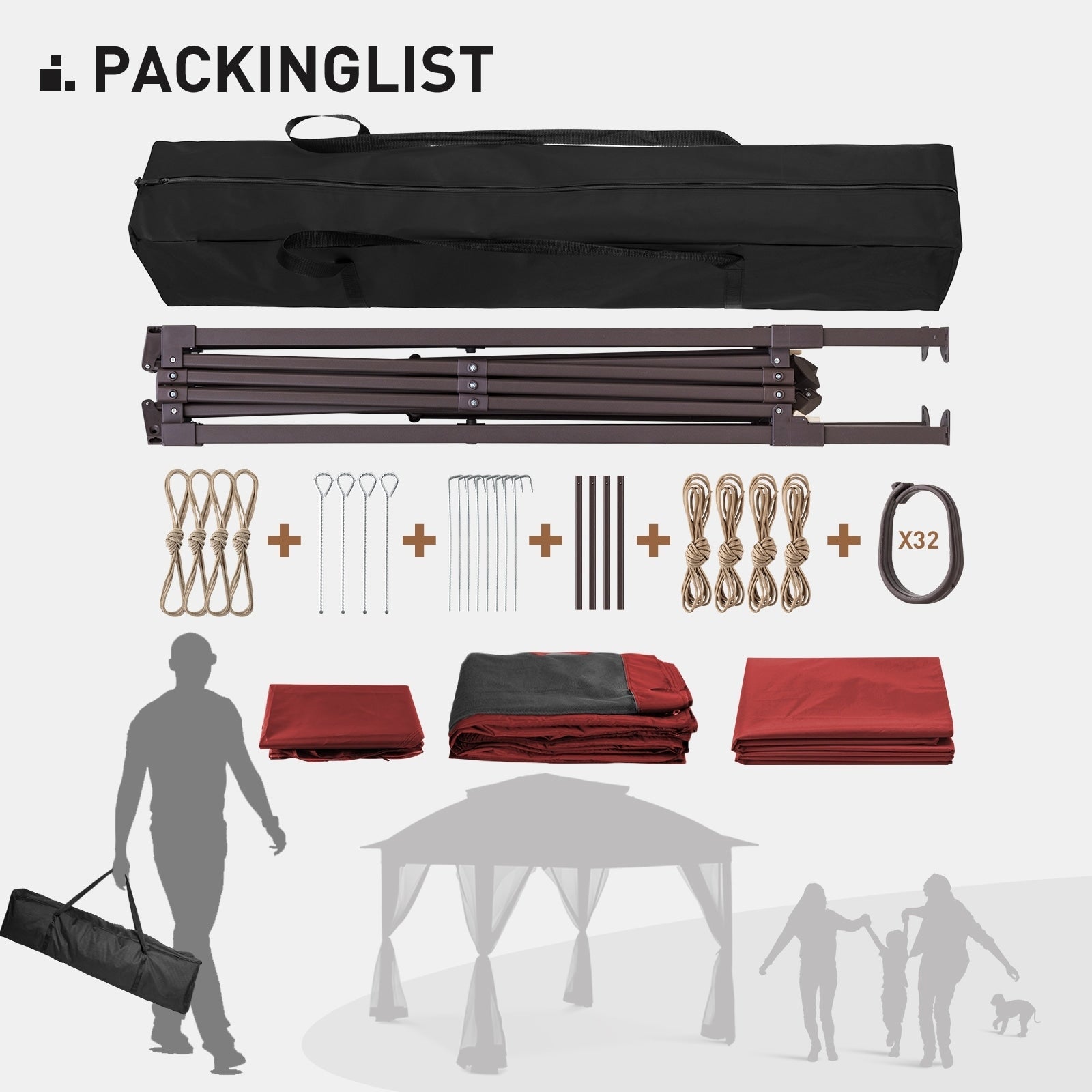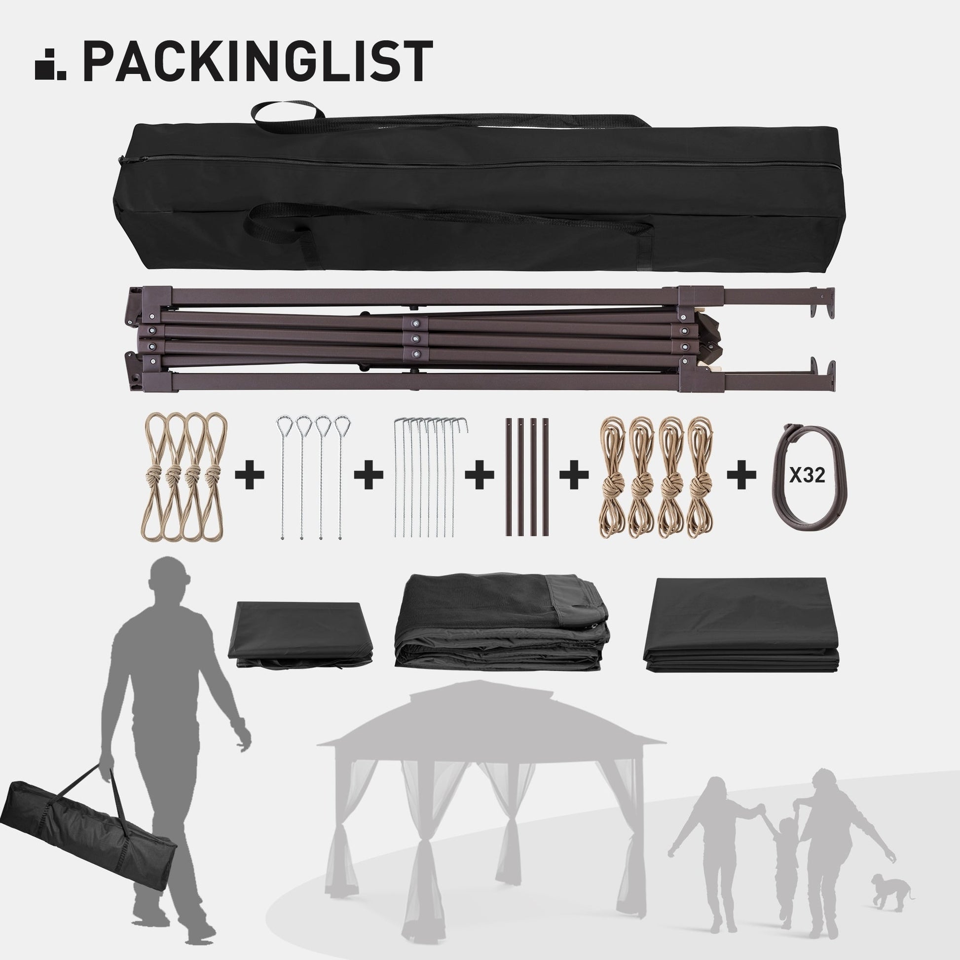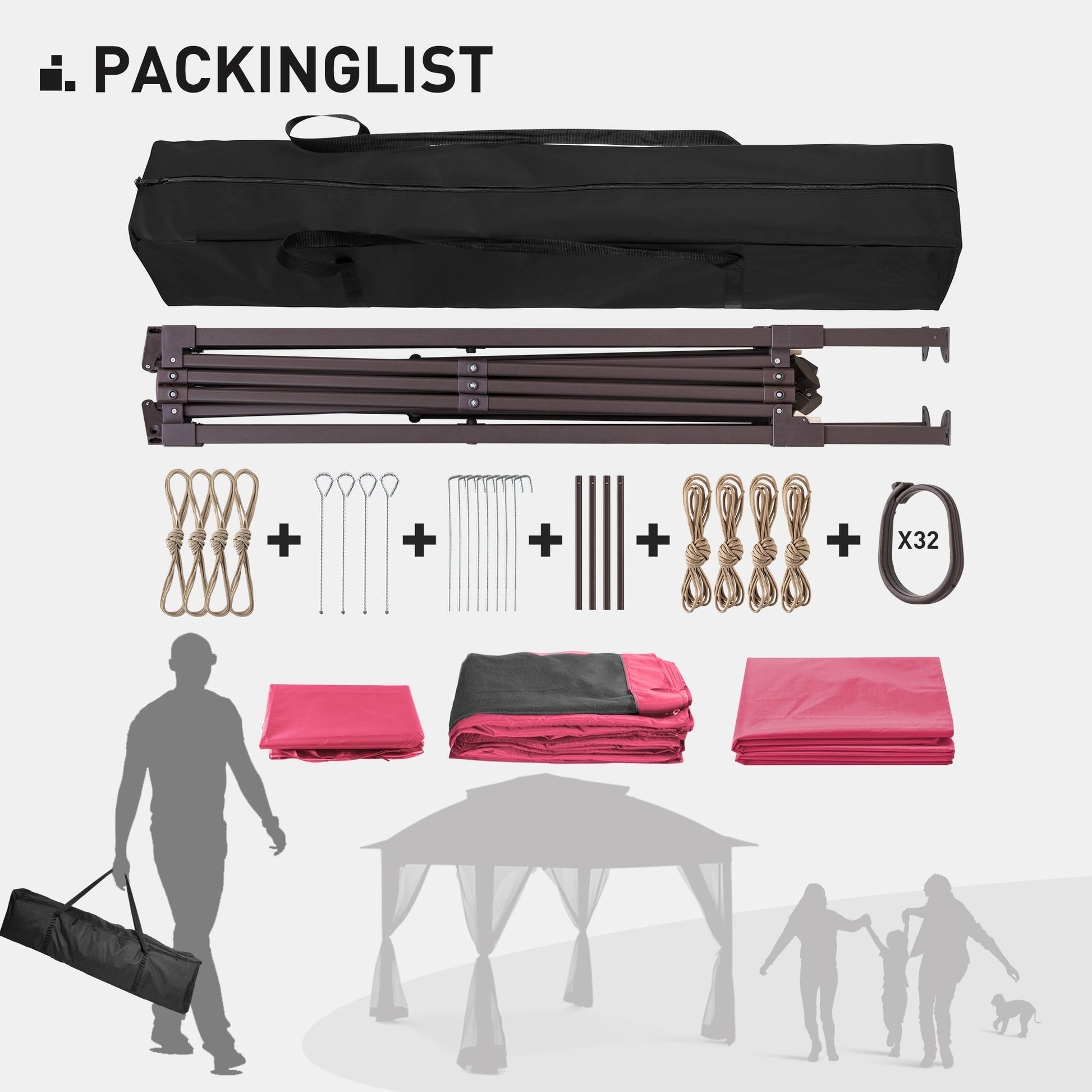 Cozywor pop up gazebo features an elegant design with double roof well ventailed to provide a cool environment. This gazebo is equipped with mosquito netting that can be closed to prevent mosquitoes and provide more private space. Instantly create an outdoor gathering spot for family and friends away from the glaring sun and pesky insects. The gazebo is made from Oxford fabric. A carrying case is included for easy transport. With straight-forward, easy-to-follow assembly instructions you'll be relaxing in your favorite new outdoor living space in no time.