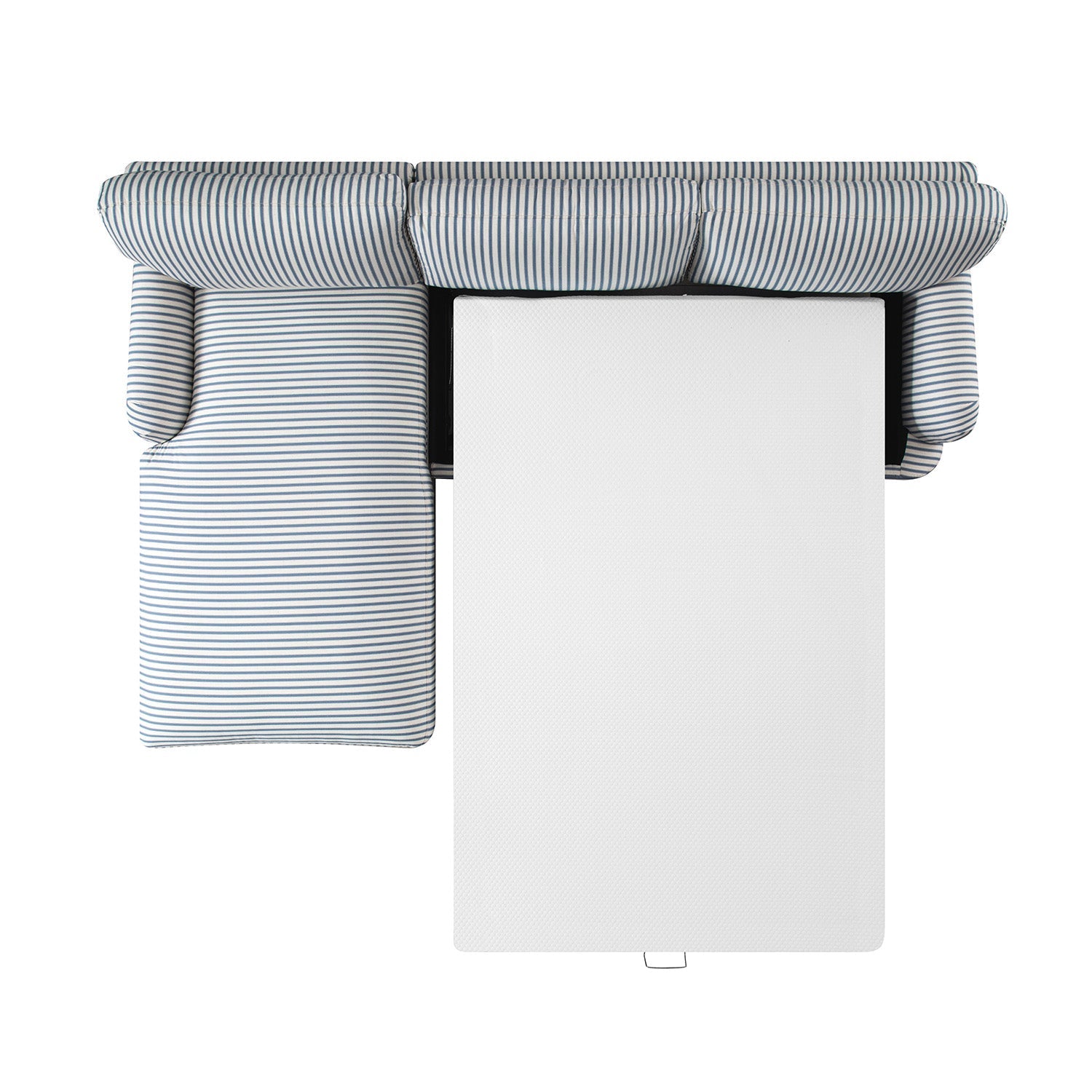 Daphnis Blue Striped Linen Blend Sofa Bed, Grande Chaise Left Hand Facing