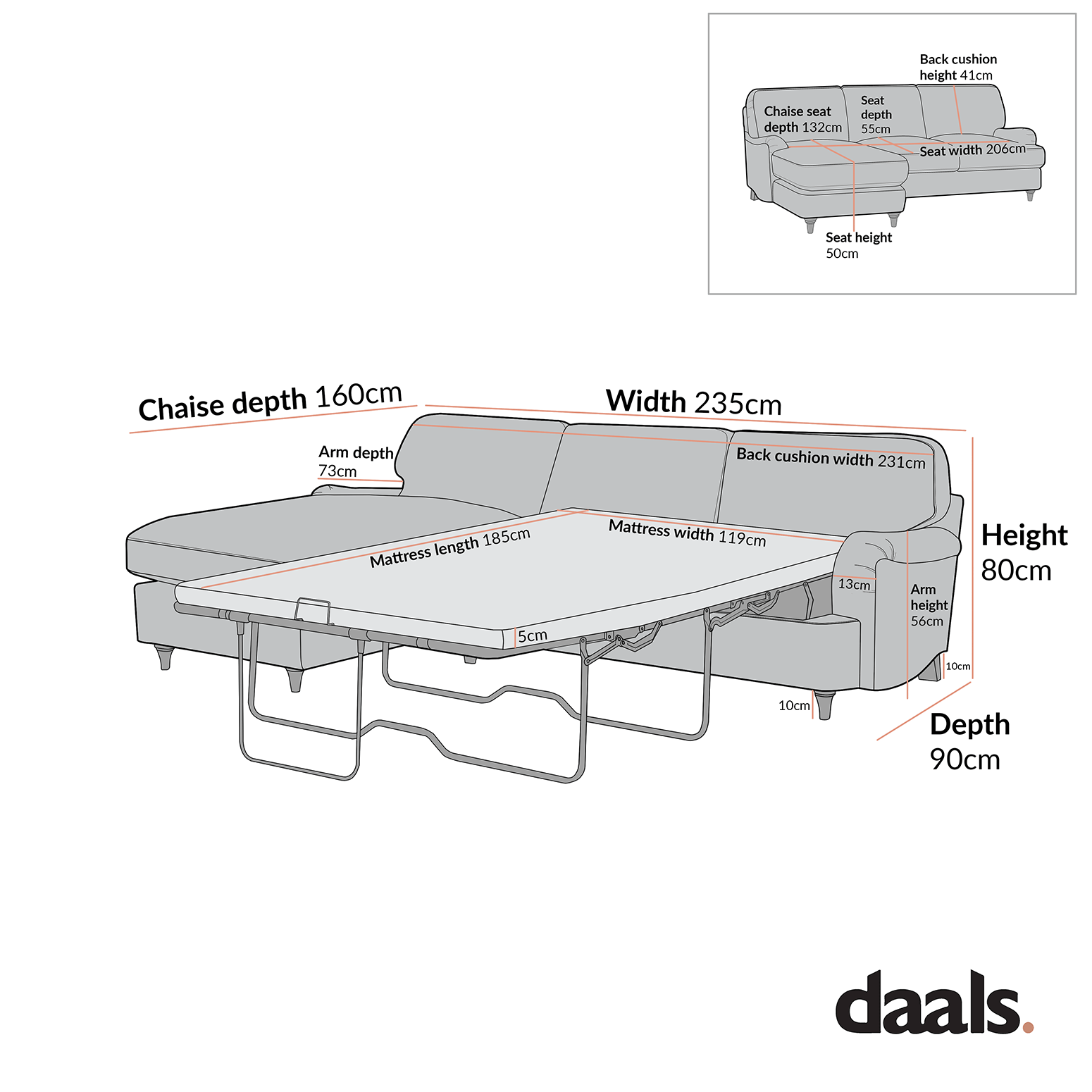 - Grande chaise sofa bed size: W 235 x D 160 x H 80 cm.