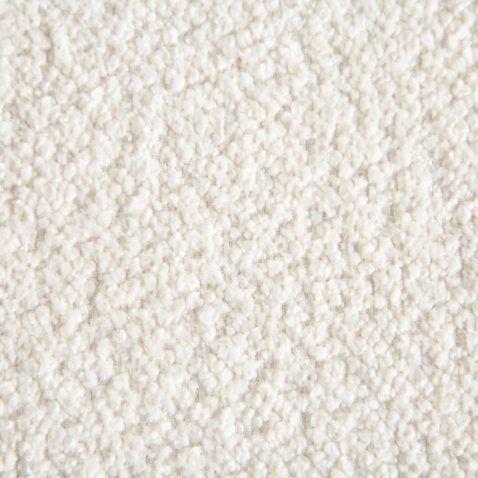 - Combination of beige boucle fabric and solid wood base delivers a cosy and earthy vibe