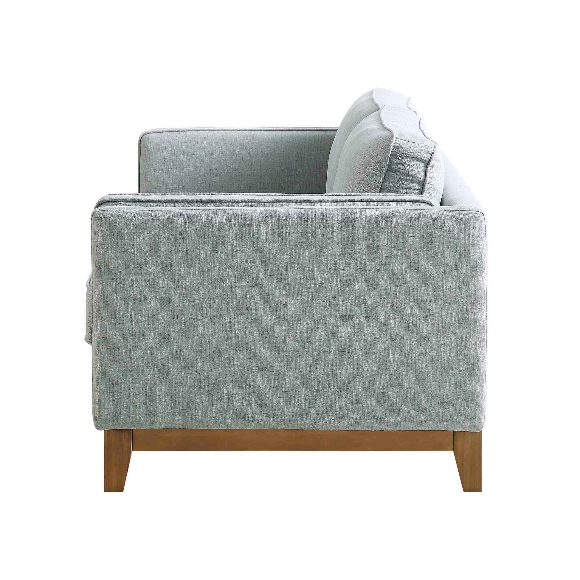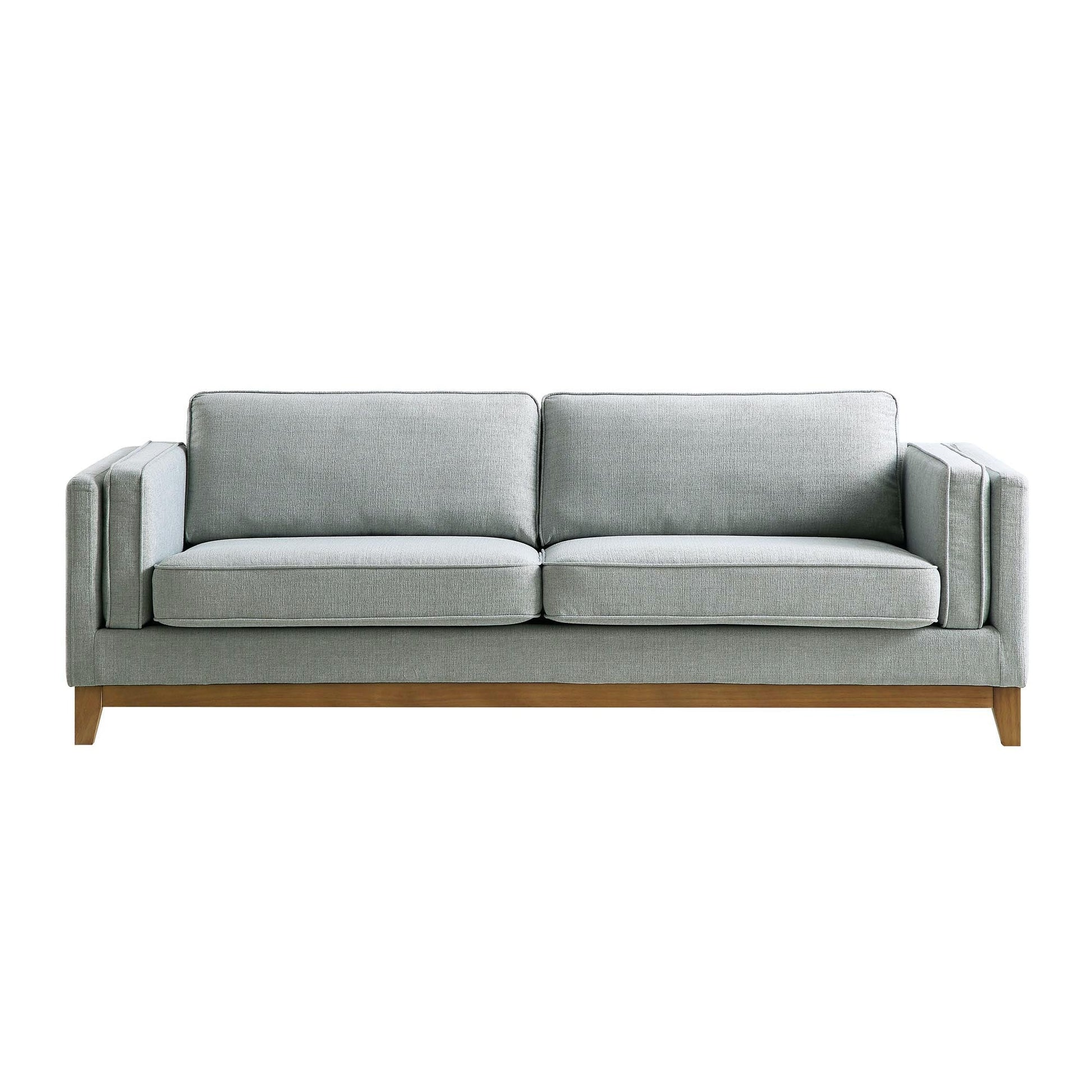- Designed with track armrests and solid wood base, the sofa features seat cushions composed of springs and foam for a comfortable lounge place