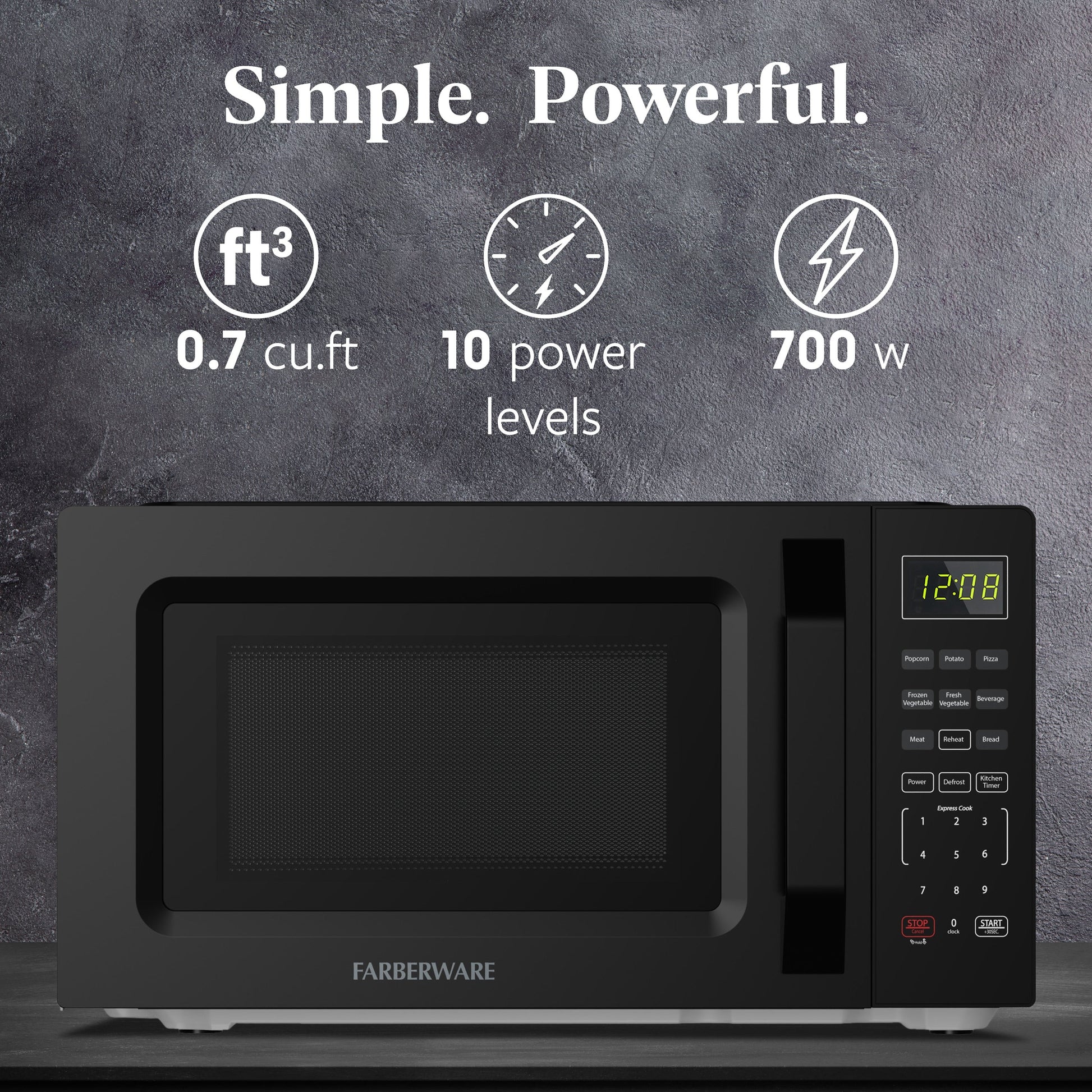 - COMPACT SIZE AND HIGH PERFORMANCE: 700W microwave with a 0.7 cu. ft. capacity, ideal for small spaces like kitchens, dorm rooms, and offices.