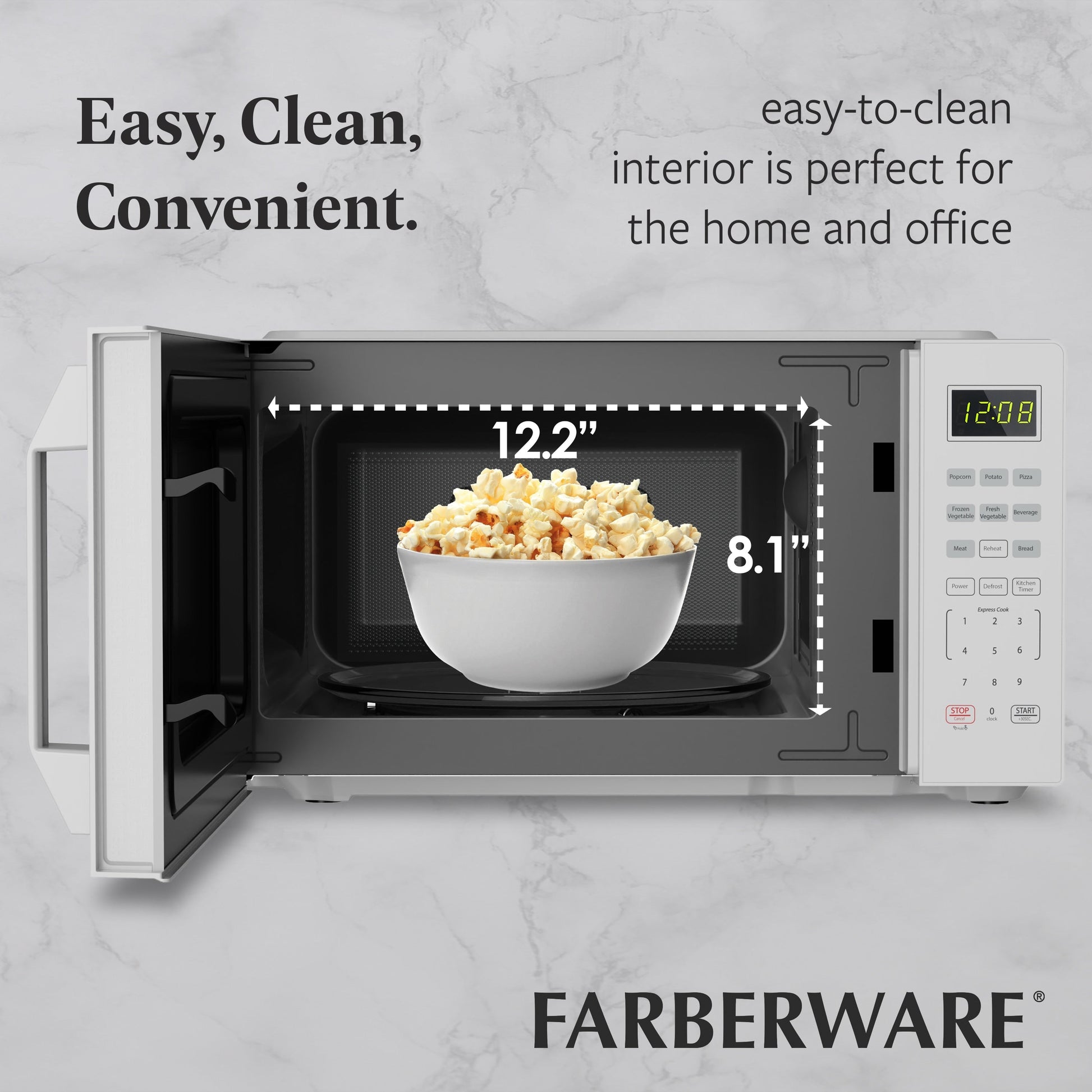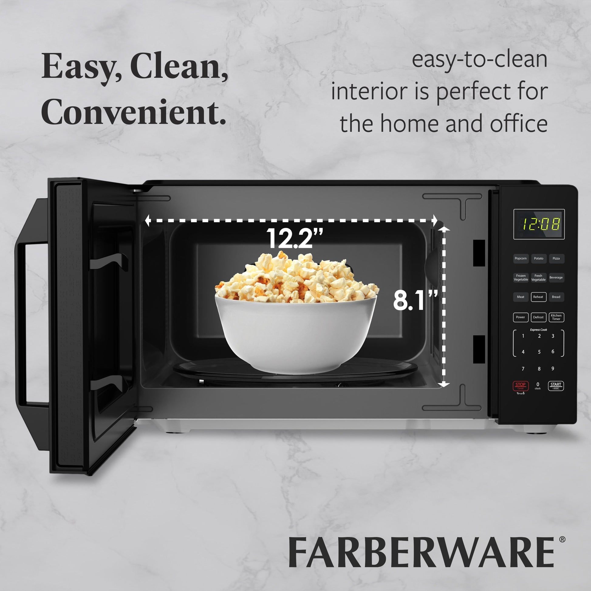 - AUTO-COOK PRESETS: Includes convenient one-touch cooking options for popcorn, pizza, beverages, and more.