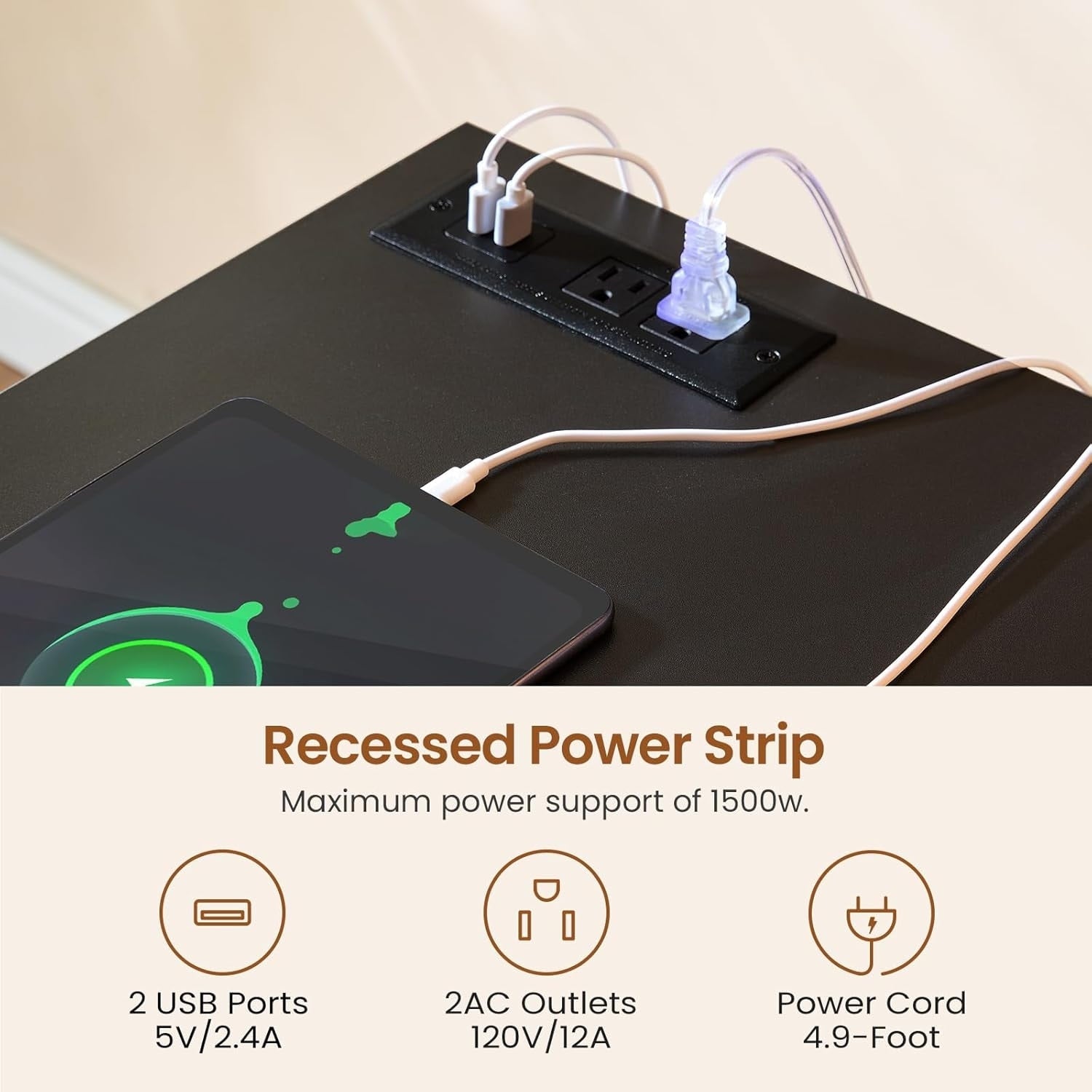 - 【Power Outlets】This computer desk is equipped with 4 AC outlets, 2 USB charging ports to provides convenience for charging your gaming gear, tablet, printer or phone. The switch is convenient and safe to turn off power, no need to unplug appliances at all times.