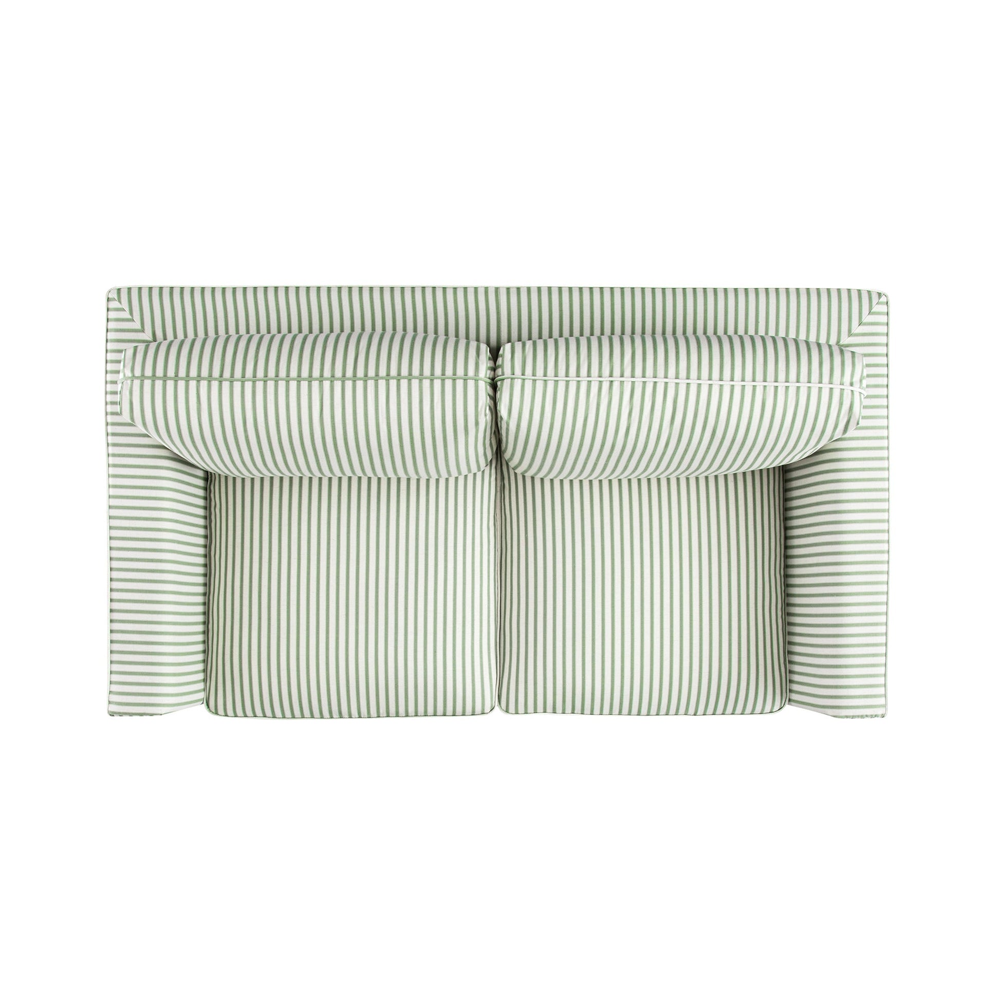 - The Fitz Skirted two seater Sofa in sage stripe is a charming blend of classic tailoring and modern comfort—elegantly understated and effortlessly liveable.