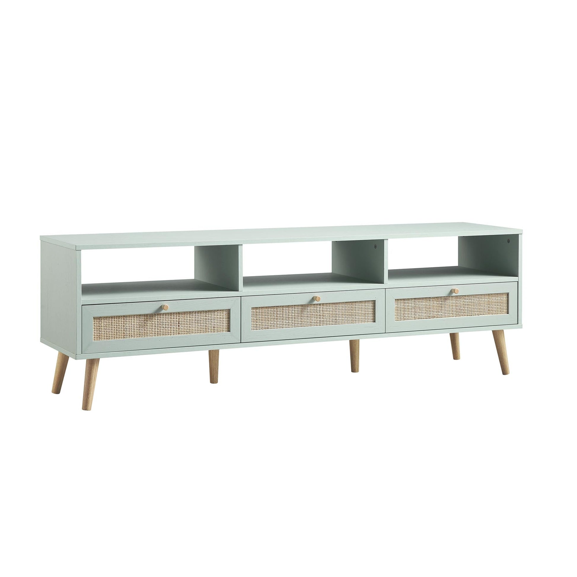 Frances Woven Rattan 160cm 3-Drawer TV Unit, Mint