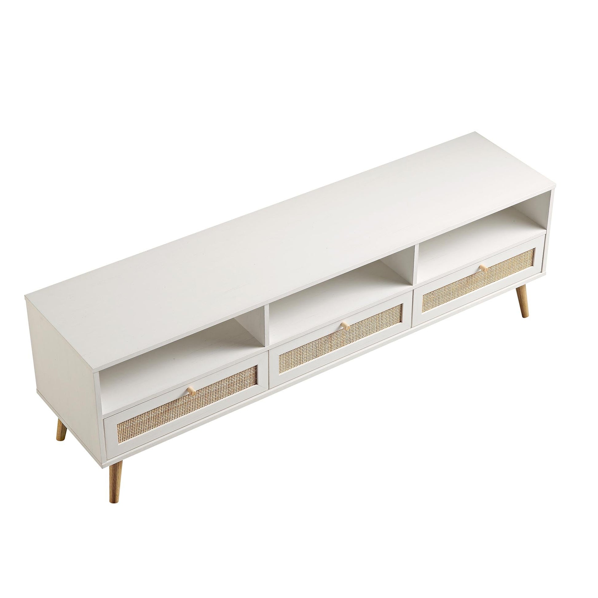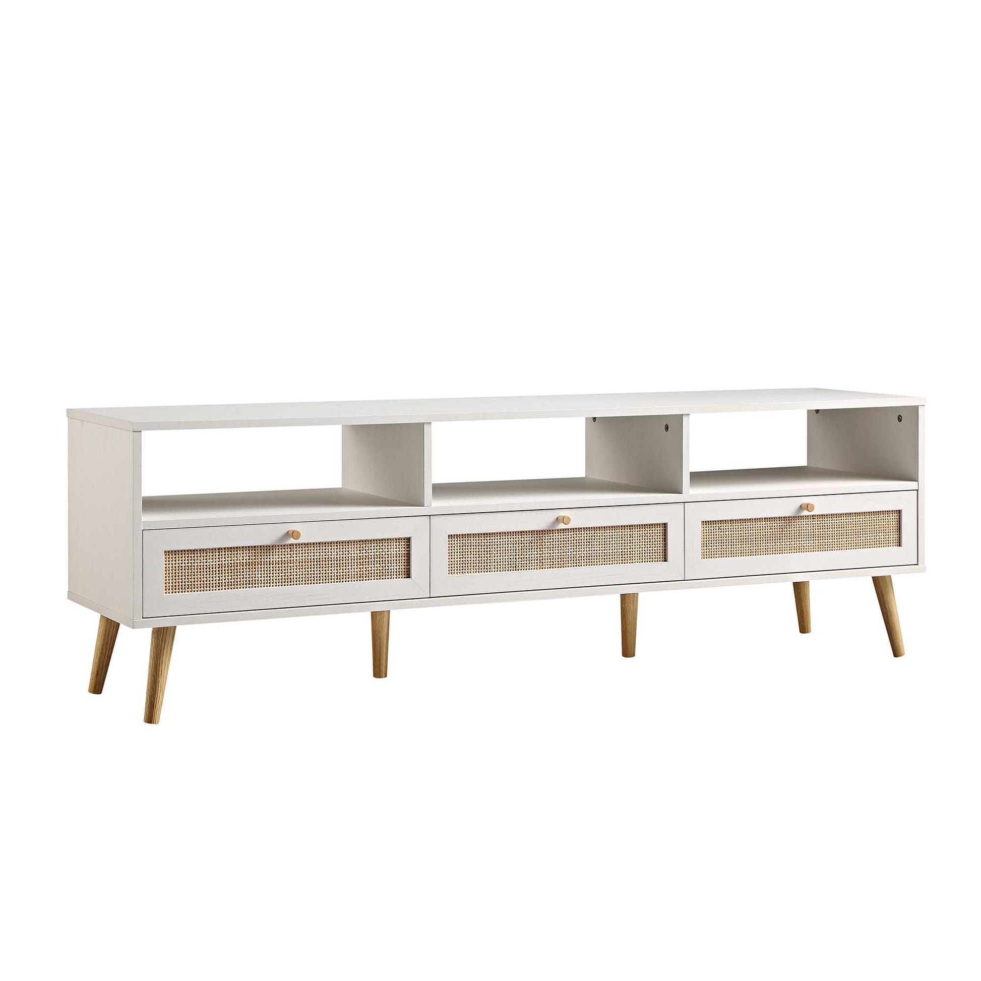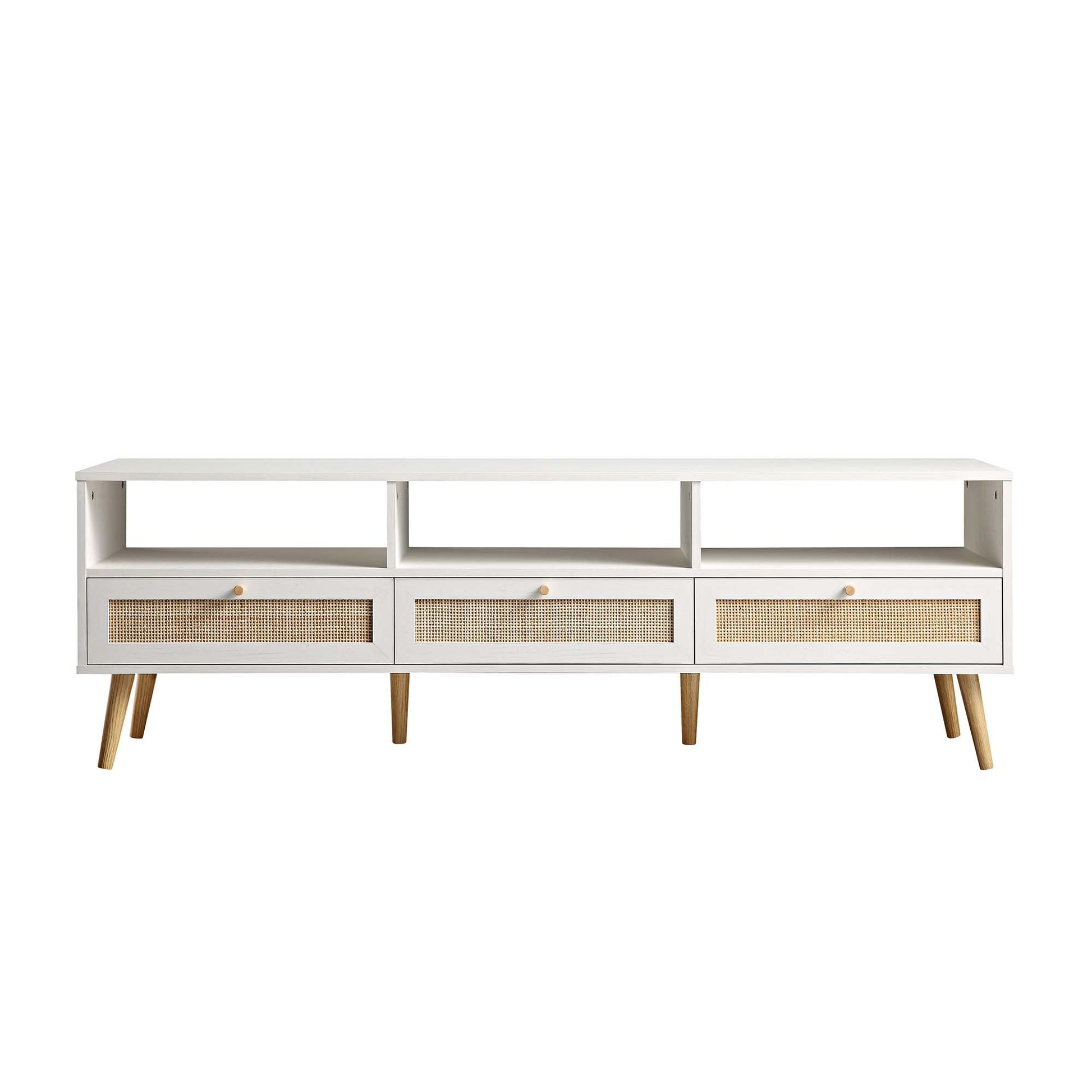 Frances Woven Rattan 160cm 3-Drawer TV Unit, White