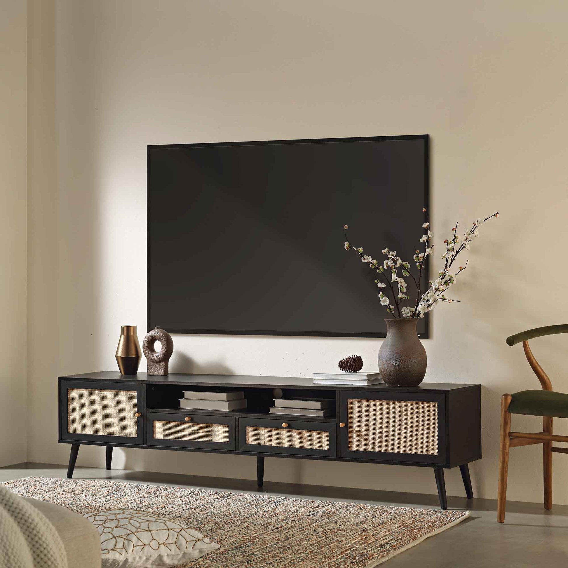 Frances Woven Rattan 200cm Wide TV Unit, Black