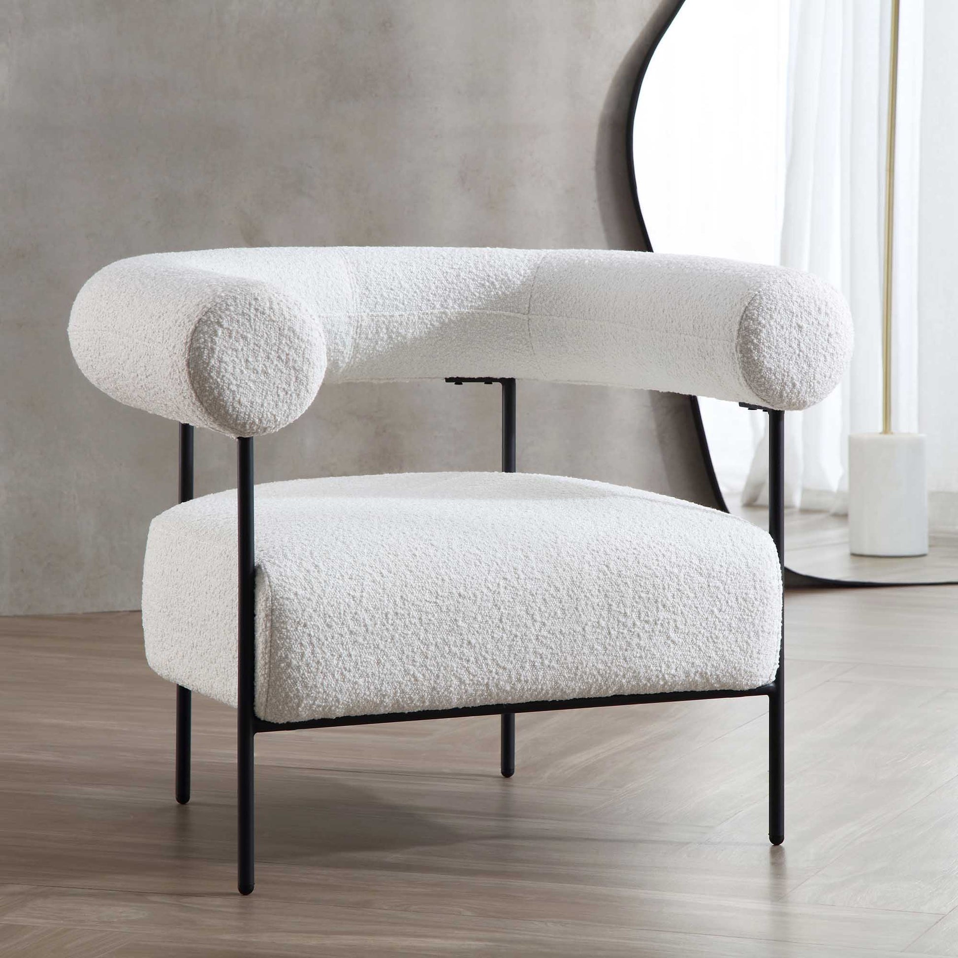 - Well-cushioned seat and beautiful white boucle fabric makes the chair an eye-popping statement piece for your room.