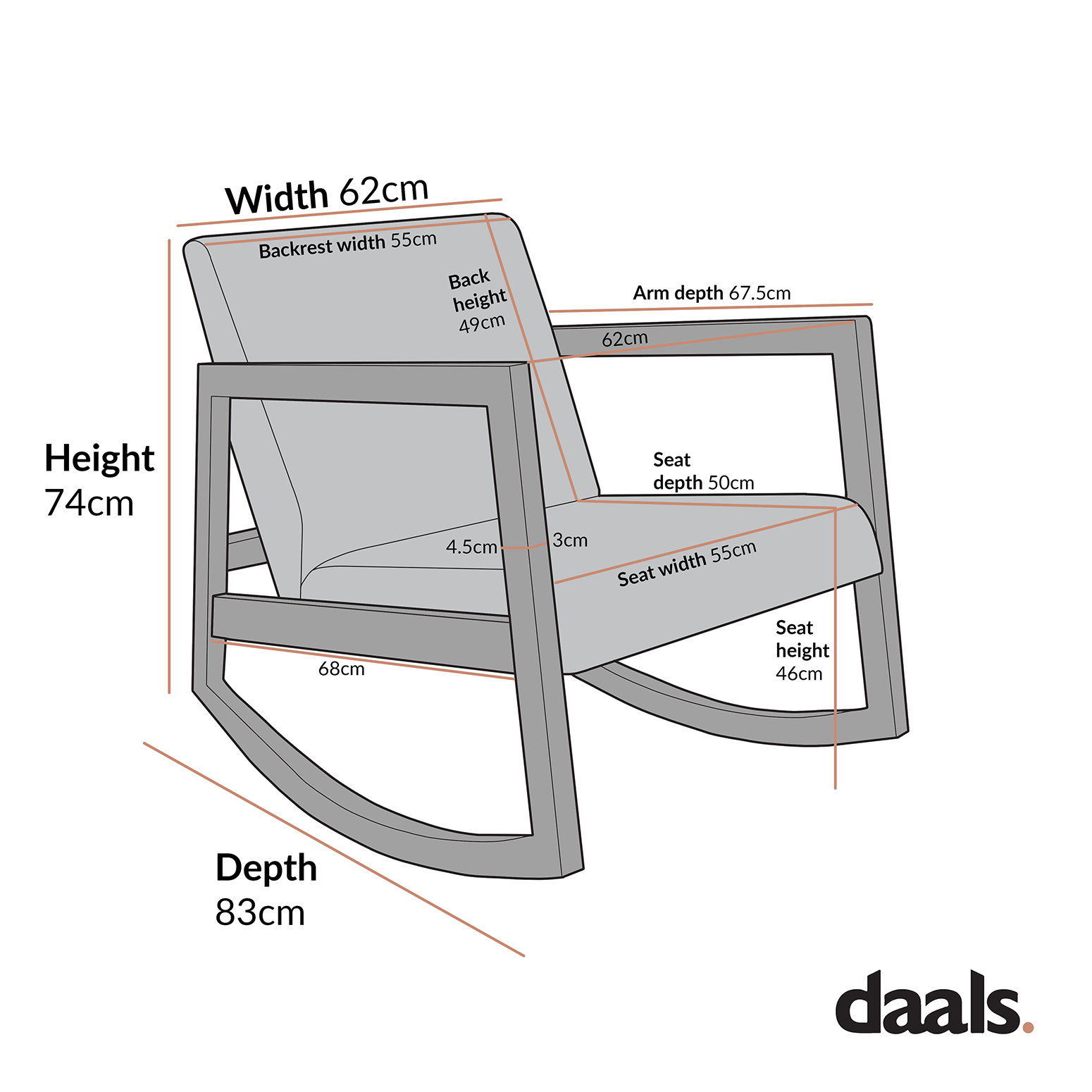 - Seat height: 46.0 cm