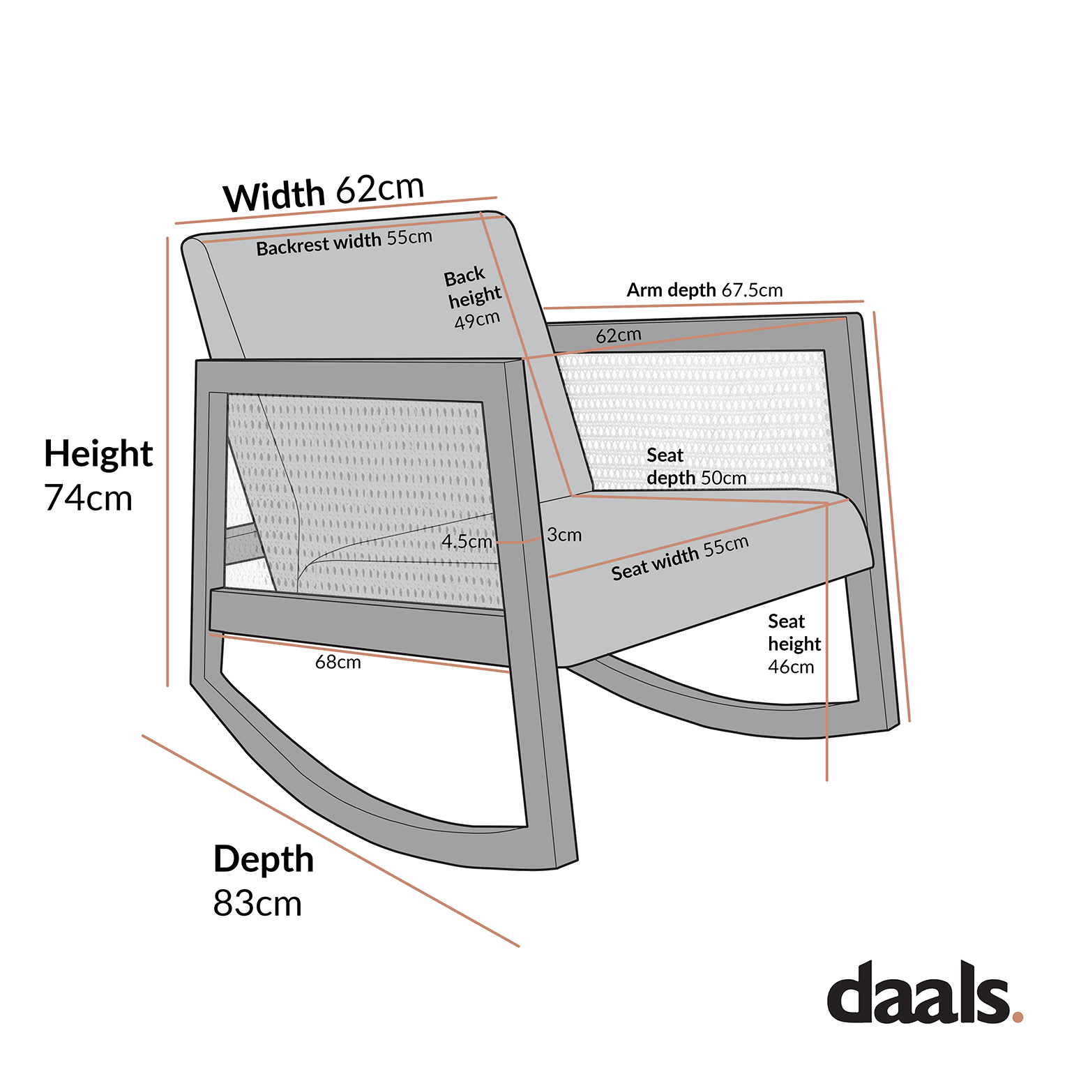 - Seat height: 46.0 cm