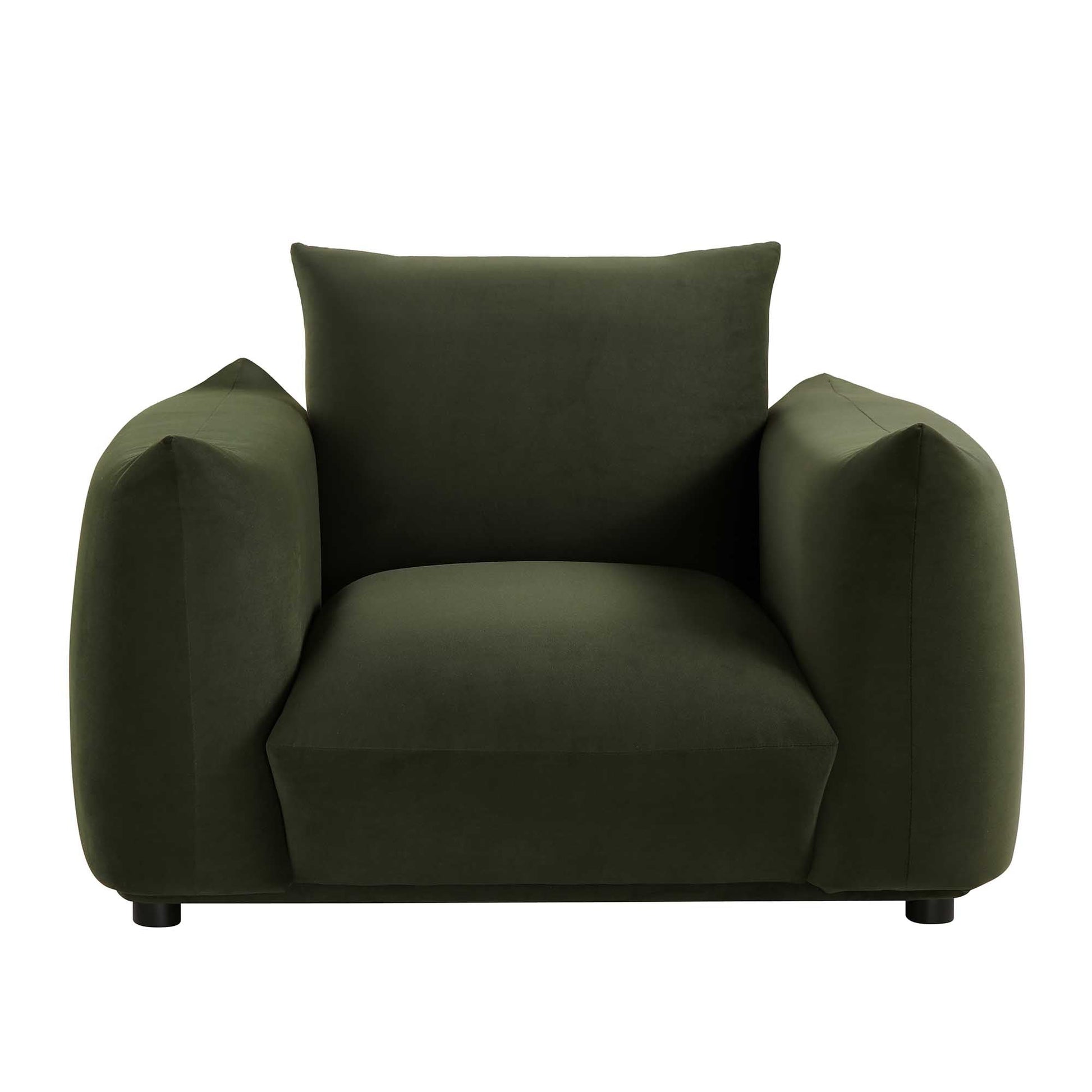 - Upholstered with beautiful earthy tone moss velvet touch fabric.