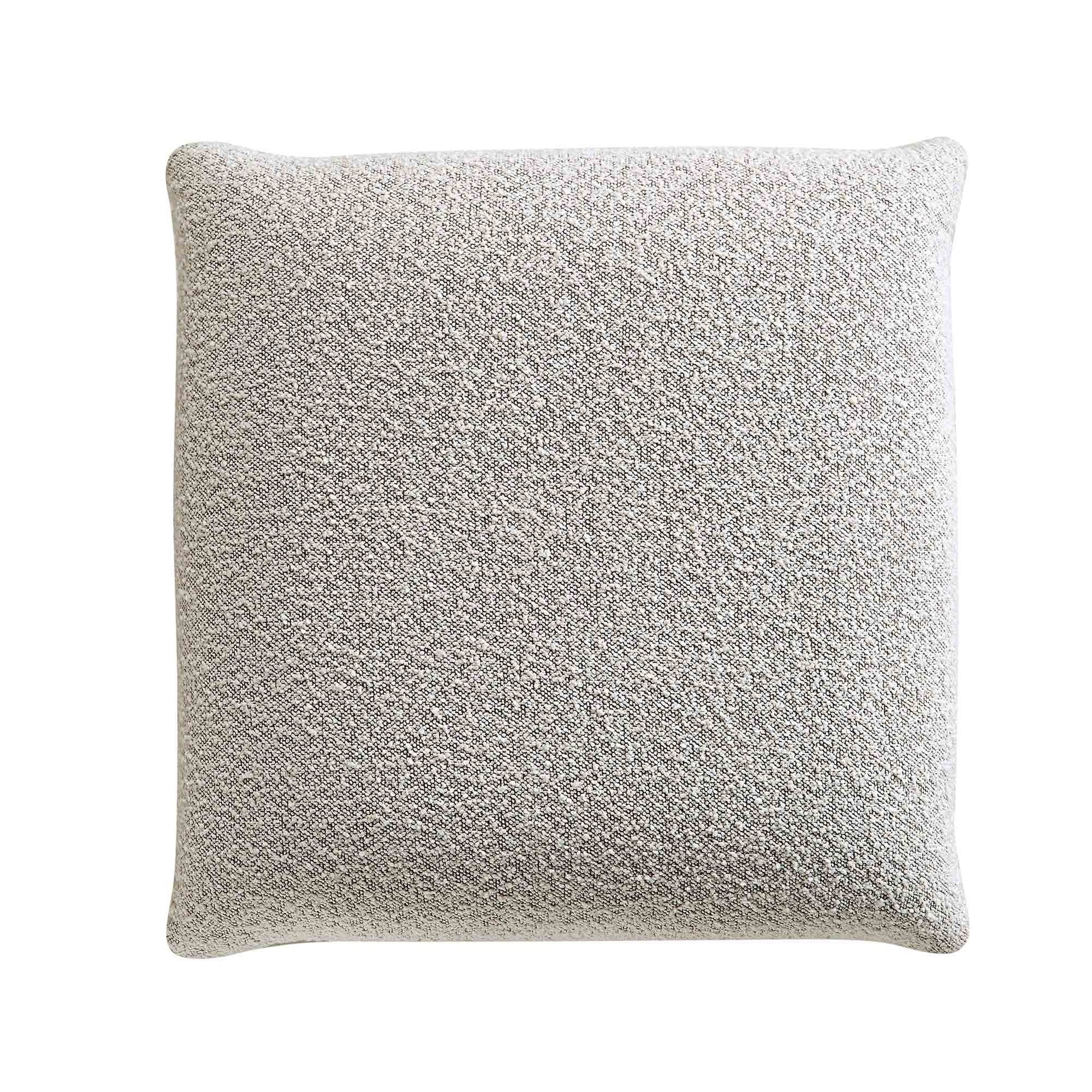 - Upholstered with chic mist grey boucle fabric for a contemporary look.