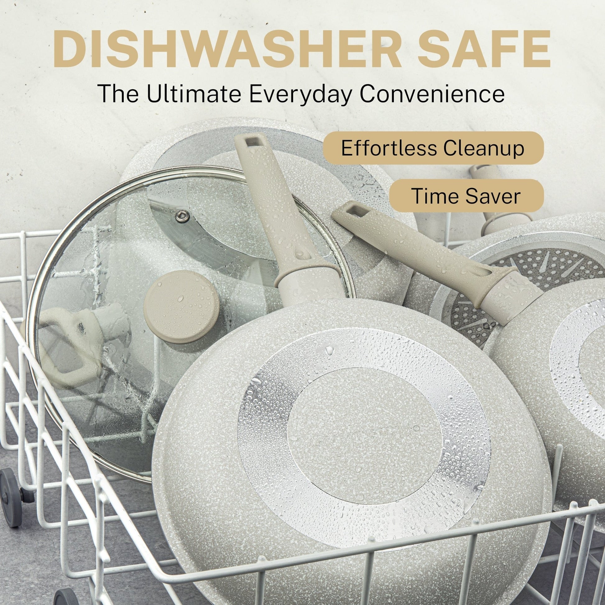 - EASY TO CLEAN, DISHWASHER SAFE: Spend less time with cleanup! After all the cooking and prepping is done, place cookware in the dishwasher for quick and easy cleanup.