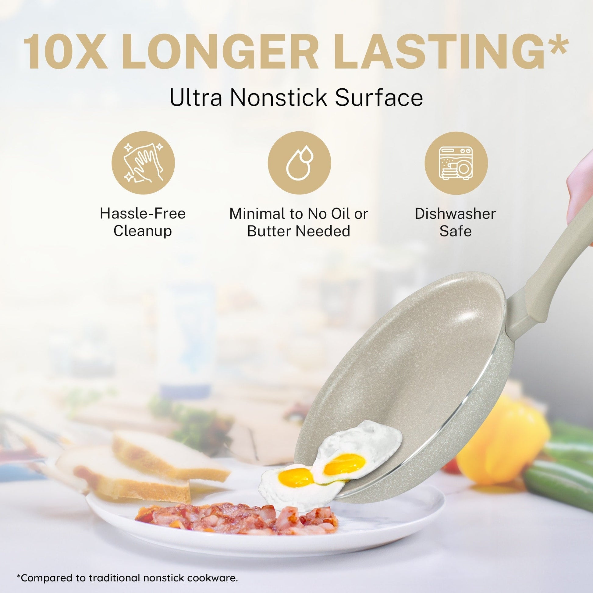 - METAL UTENSIL SAFE: The coating of the pan is infused with diamonds, the strongest material on earth which makes it durable enough to withstand metal utensils, spatulas, spoons, whisks and even electric beaters while delivering years of outstanding, nonstick use