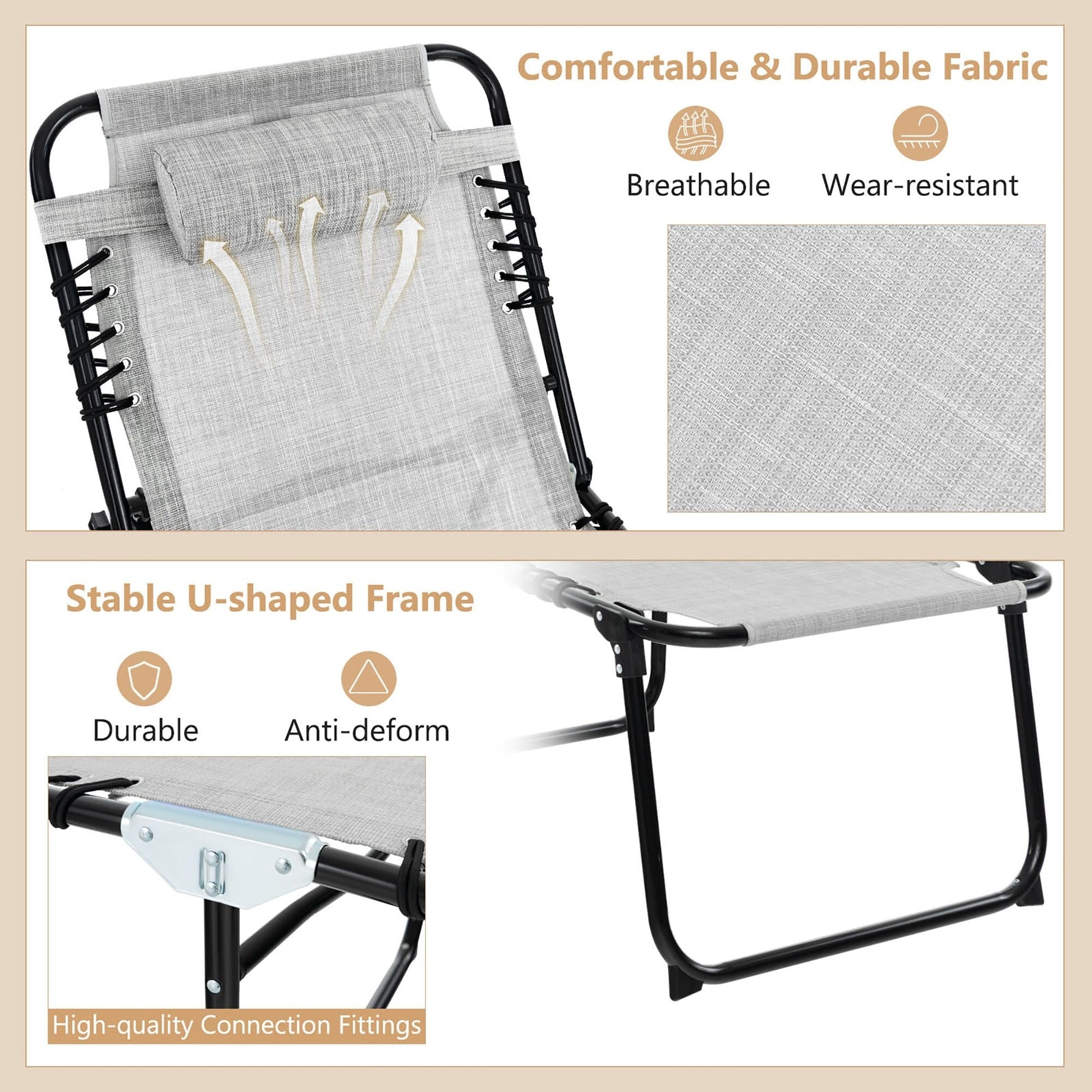 Gymax Folding Beach Lounger Chaise Lounge Chair w/ Pillow 4-Level
