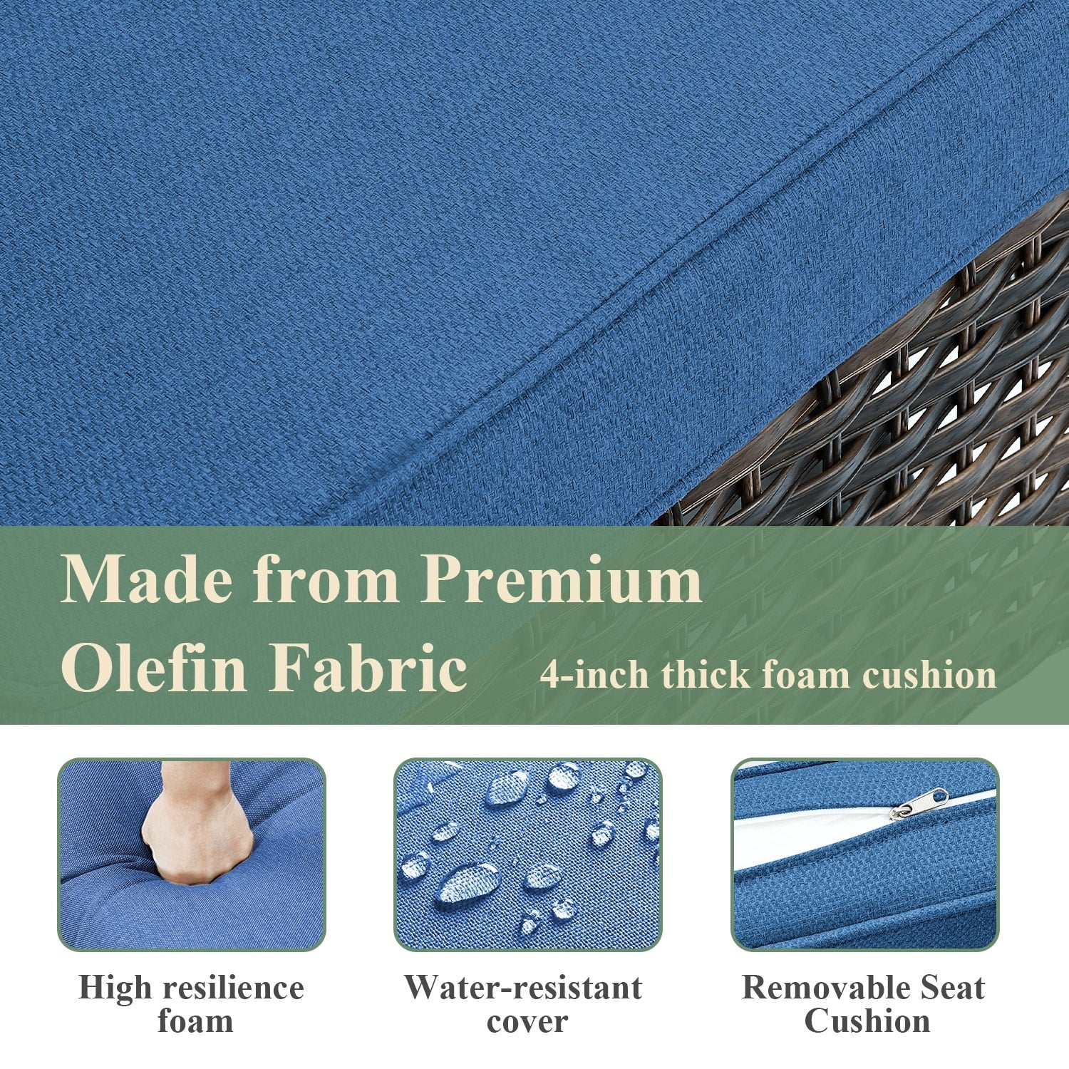 - Plush, Deep Seating: This outdoor lounge chairs feature deep and wide seats with 4-inch thick sponge-padded cushions create the ultimate patio seating experience.