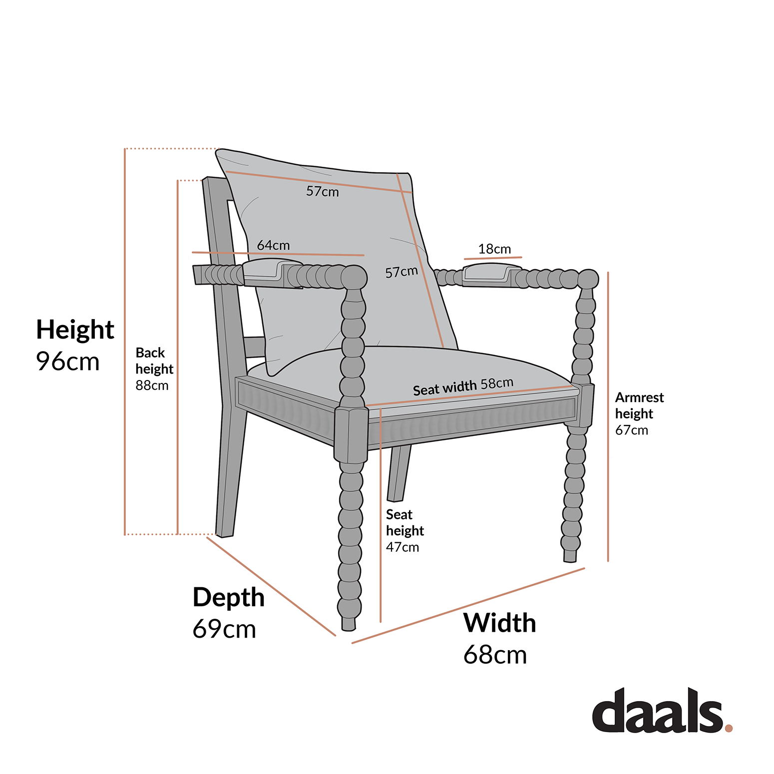 - Size: W 68 x D 69 x H 96 cm. Seat height: 47 cm.