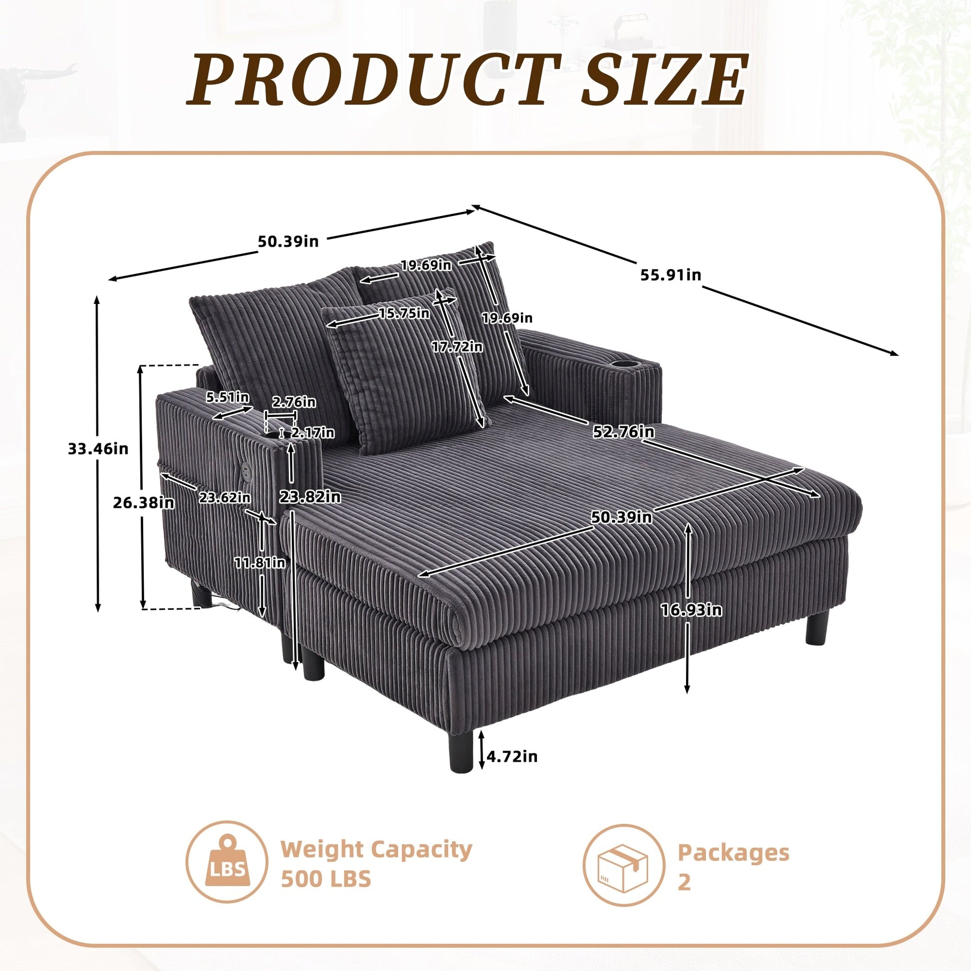 - 1*USB(5V-2.4A)+1*Type-c(5V-2.4A) Practical Type-C and USB ports: The sofa is built-in 1×USB (5V-2.4A) + 1×Type-C (5V-2.4A) charging port, which can be charged at any time, making the sofa the 'energy supply station' in the living room, so that you can catch up with the drama and office work without losing power, and enjoy the comfort and convenience in one step!