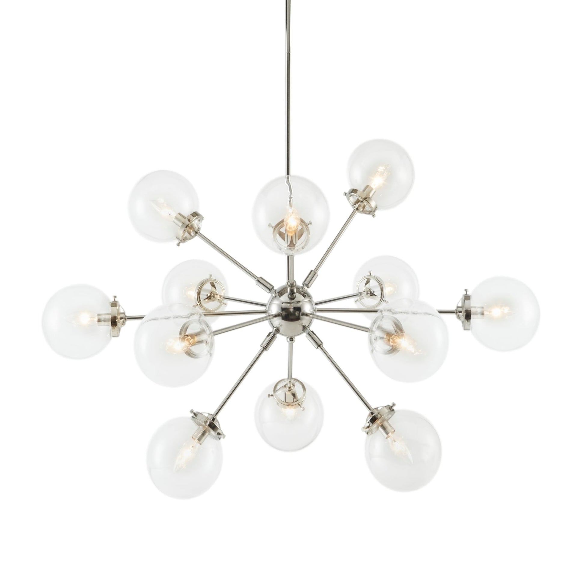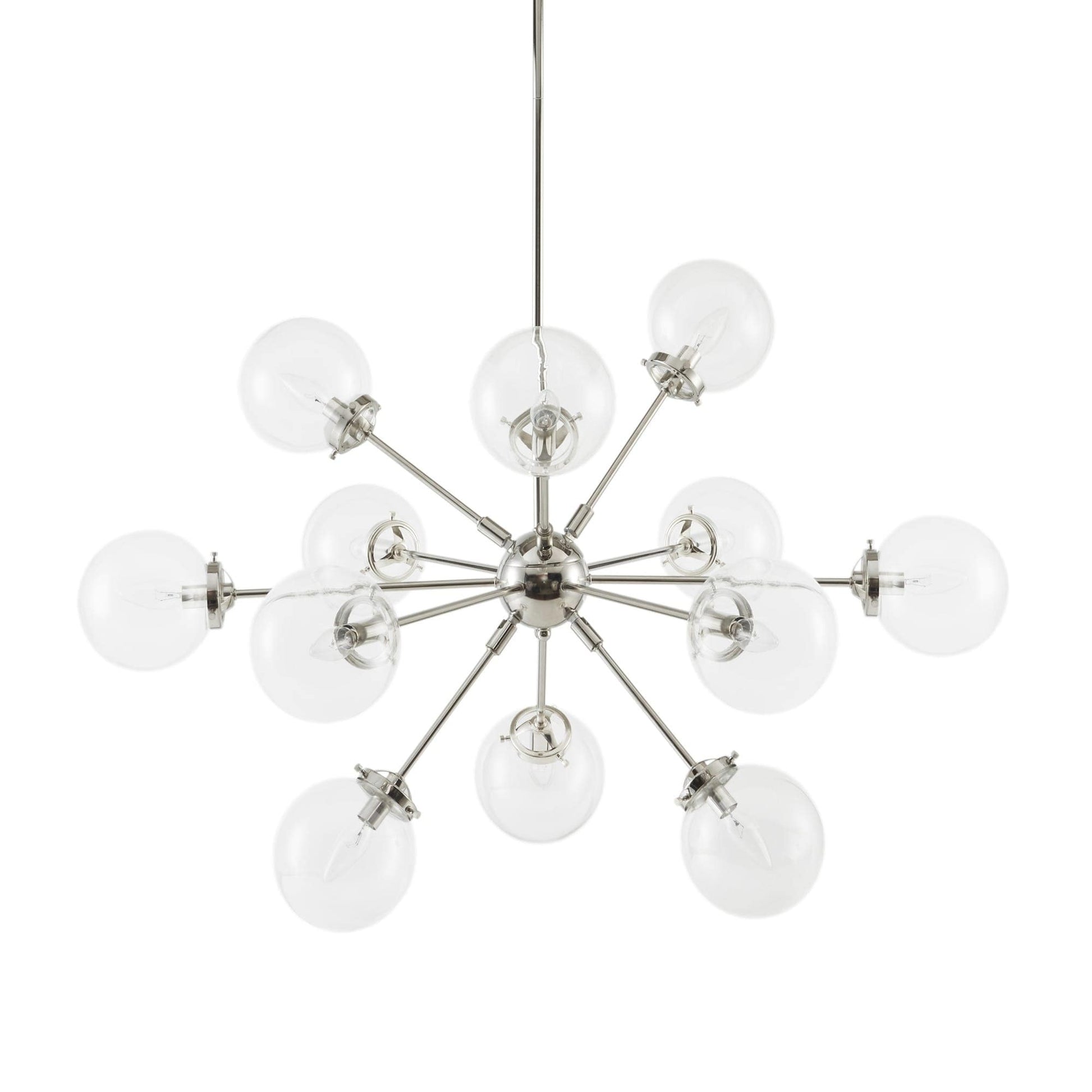 - Mid-century modern chandelier with 12 oversized clear round bulbs