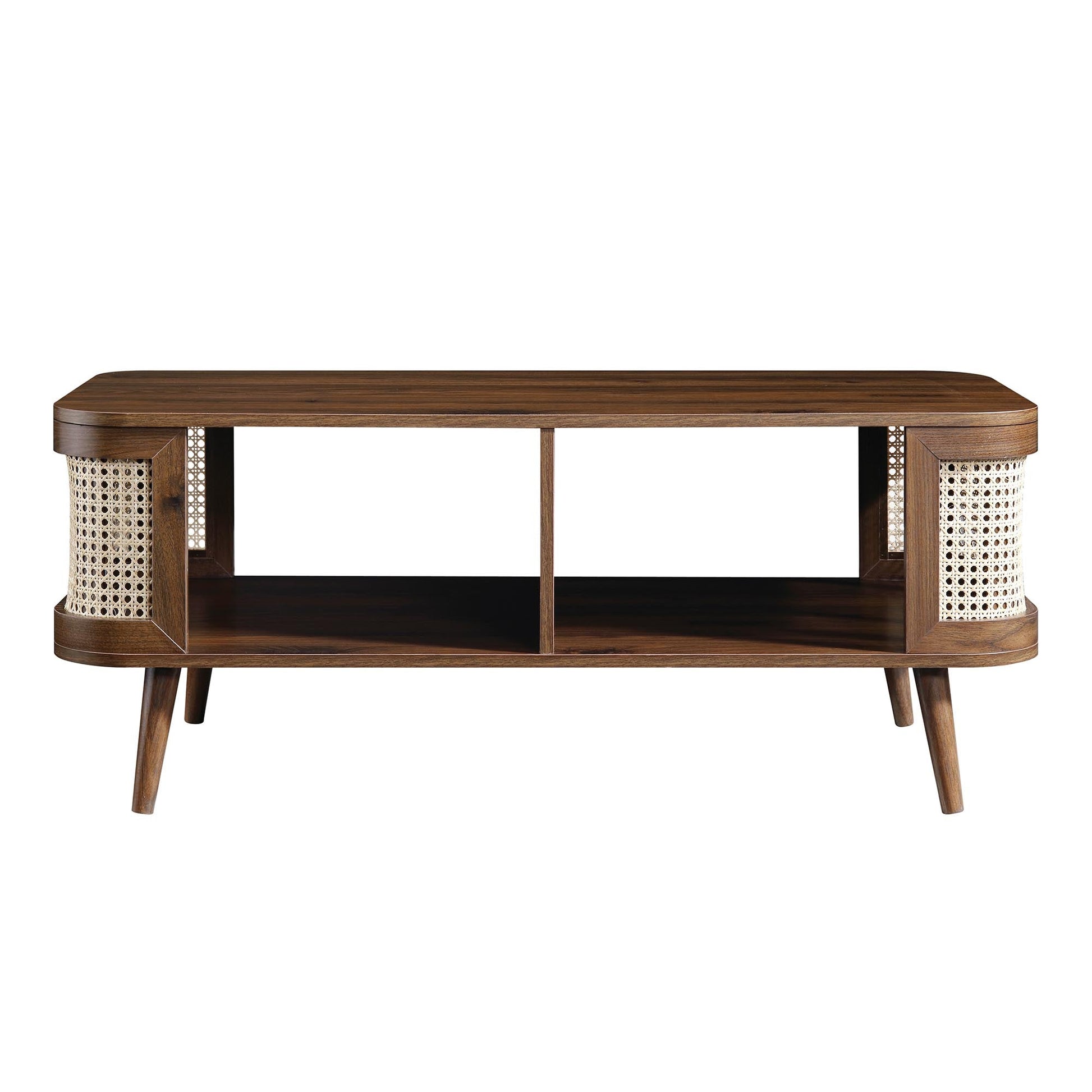 - Bringing natural vibe and lightness to the focal point of the living room, our Izzy coffee table features rounded edges with gently curved rattan panels.