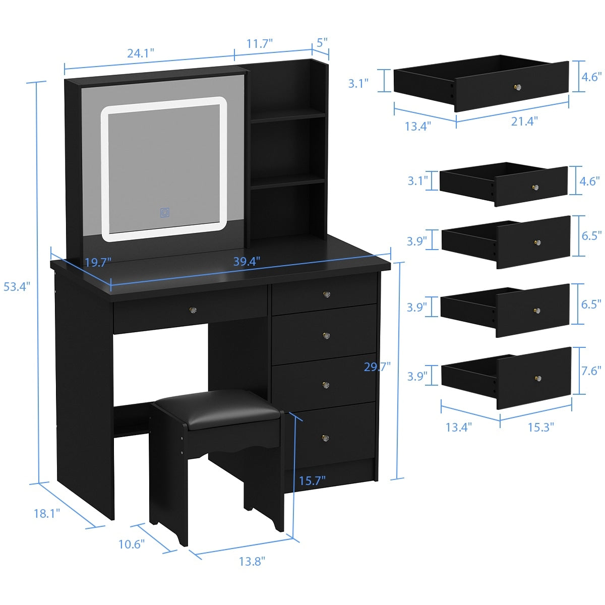 Kerrogee Makeup Vanity Set with Adjustable Lighted Mirror & Stool - 39.4L x 19.7W x 53.5H
