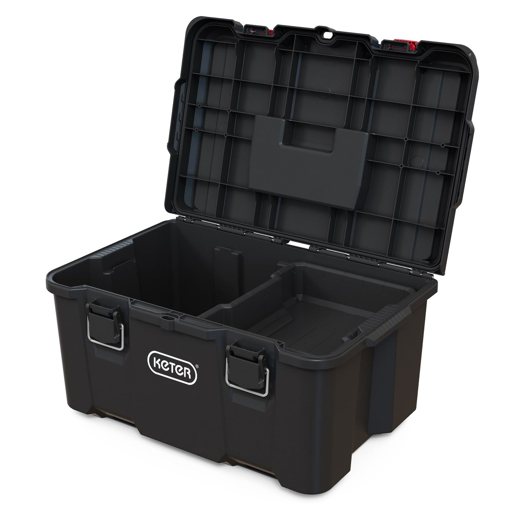 The Keter Stack-n-Roll Modular Tool System offers a practical storage solution for your hand tools, power tools, and all types of hobbies or home DIY use. It is perfect for keeping your important stuff organized and accessible at the same time. The biggest feature is its interlocking modular connectivity within all 3 pieces included. This allows you to finish your job and put away all of your tools to minimize space and keep you organized. A drawer lock bar means you’ll never have to worry about drawers slipping out when you’re on the move (lock not included). Made from sturdy and durable resin, this lightweight drawer unit is built for frequent use.