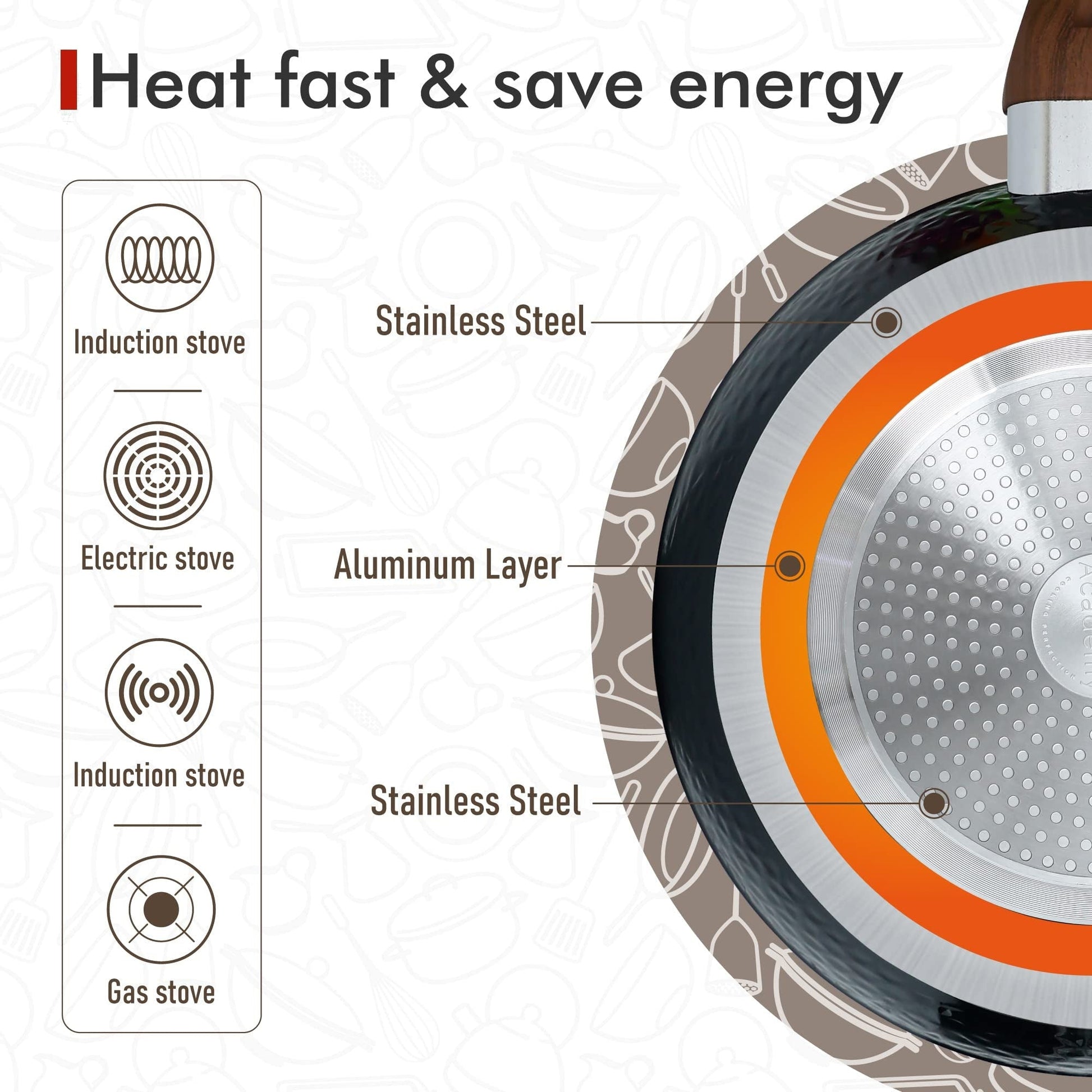- Forged aluminum bottom with high heat conductivity for even surface heating