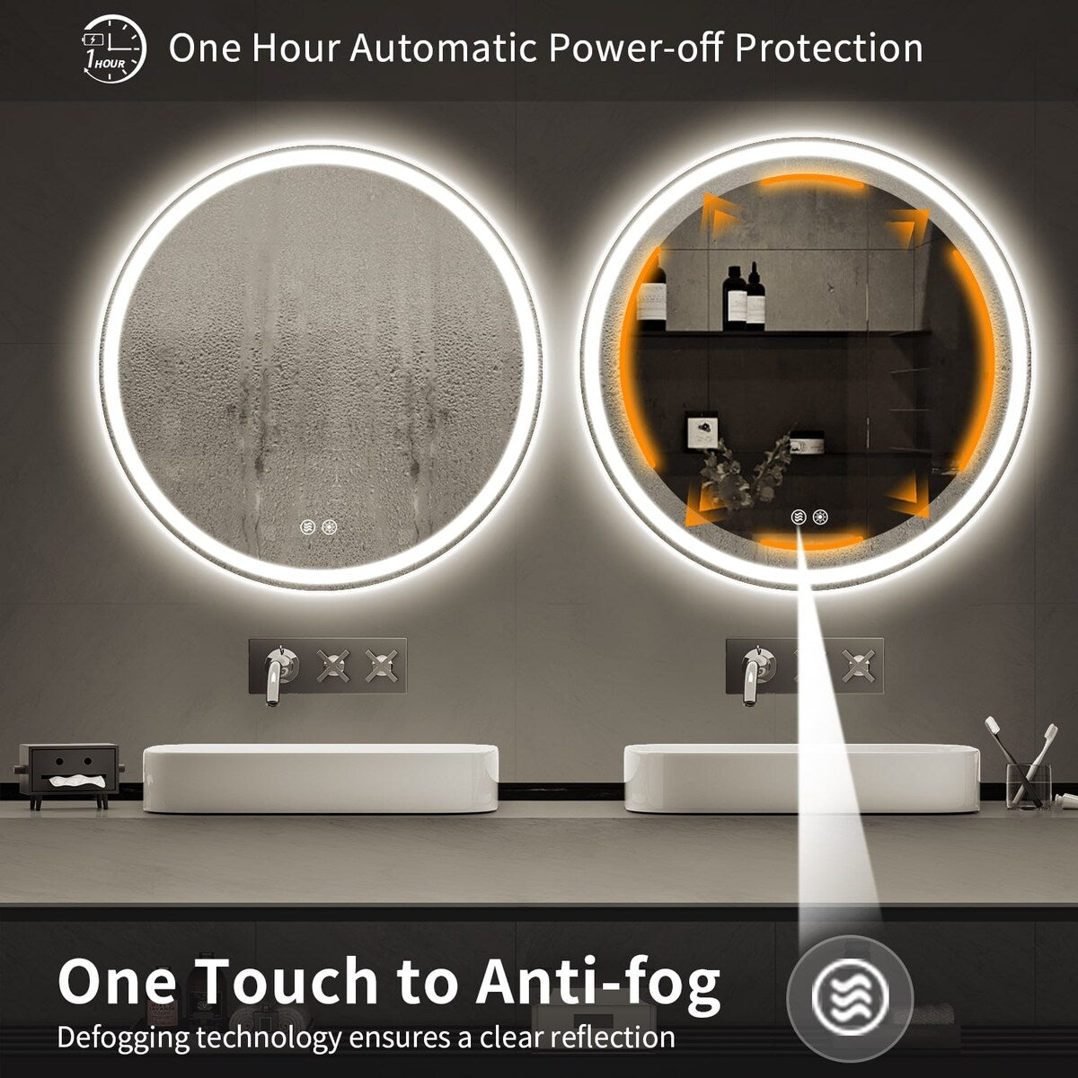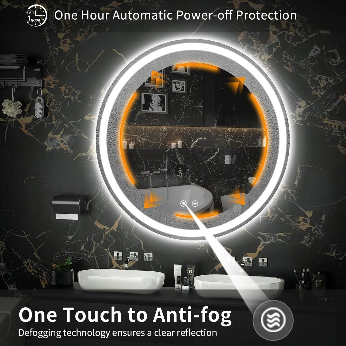 No one can resist a piece of furniture (vanity mirror with LED light) that makes bathrooms, bedrooms, and living rooms more practical and unique. This bathroom mirror with a backlit and front light, which can be adjusted to 3 light temperatures and different brightness levels, allows the modern woman/man to apply make-up and skincare in ideal lighting conditions. Also, the wall-mounted mirror with light features a newly improved anti-fog system to ensure it is always clear and fog-free. The round vanity mirror can be used as a decorative mirror in an entryway, closet, or hallway.