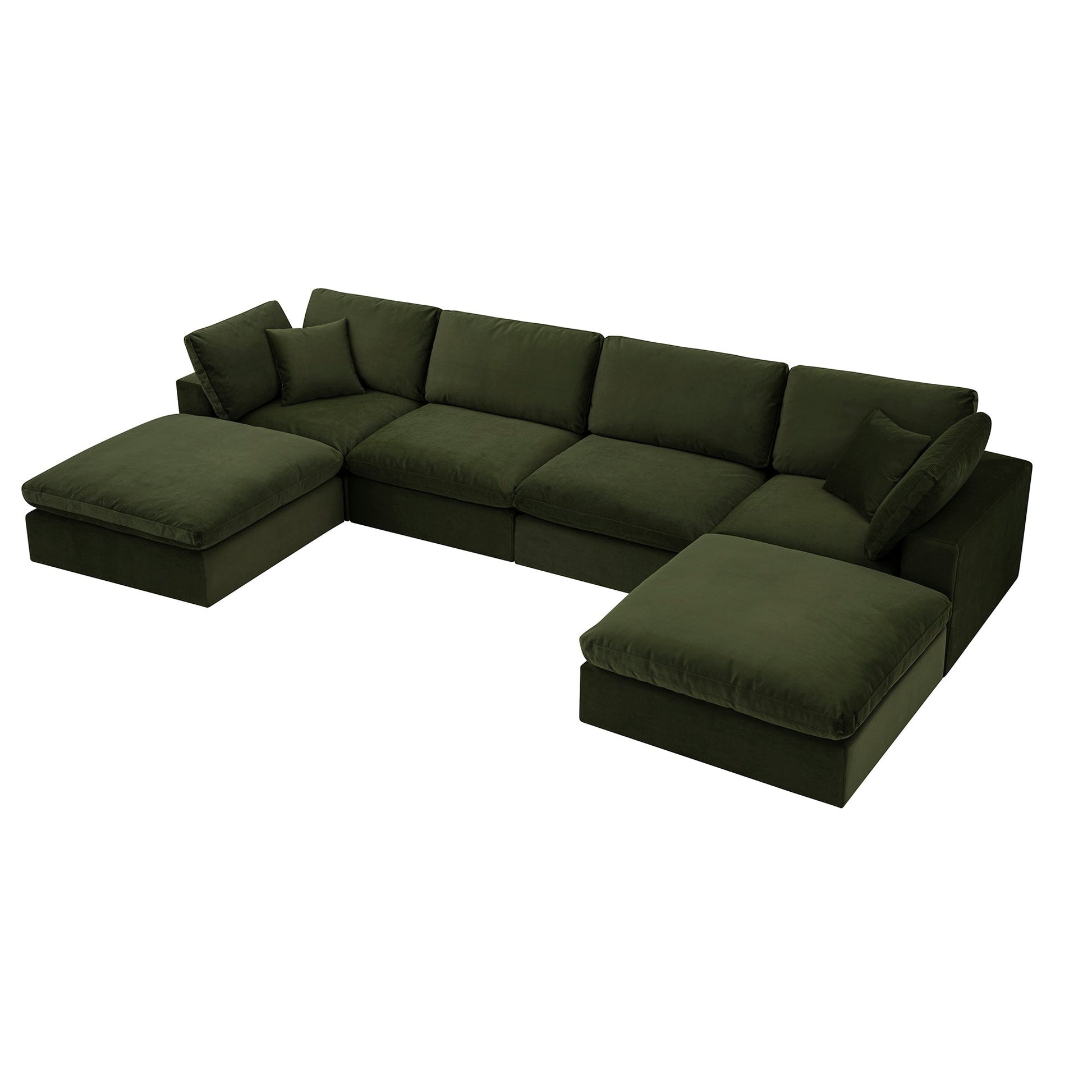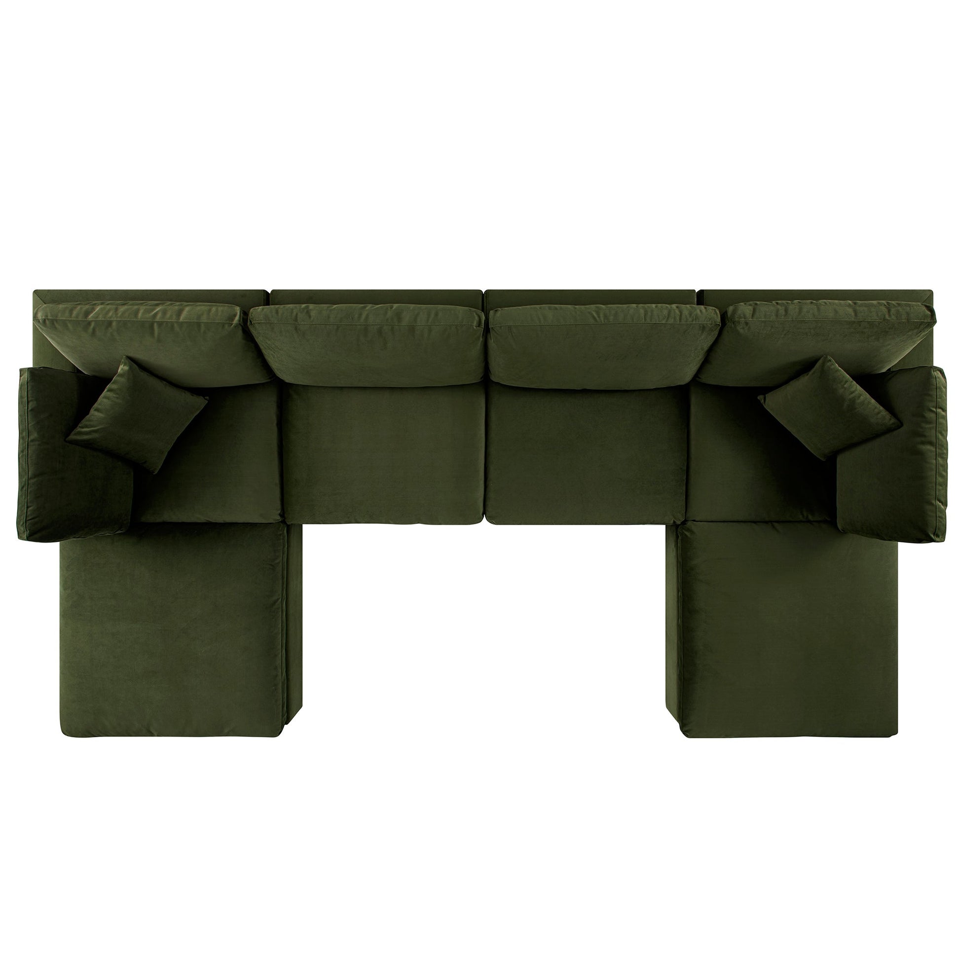 Lutyens Moss Green Velvet Modular Sofa, 6-Piece U-Shape Set