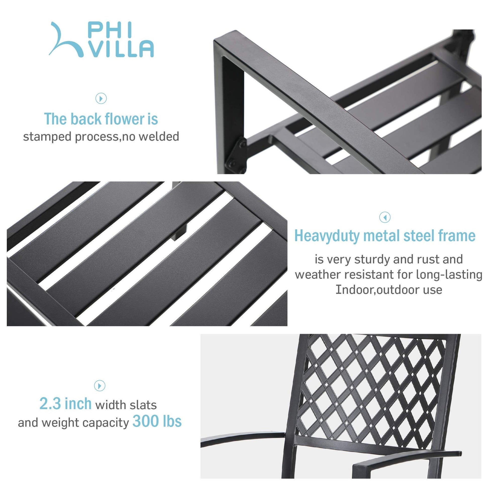 - 【Premium powder Coated Metal】: Outdoor tables and chairs are all constructed with sturdy wrought iron frame longevity with e-coating for rust and weather resistance, bringing you years of enjoyment on your patio, balcony, or other outdoor area.