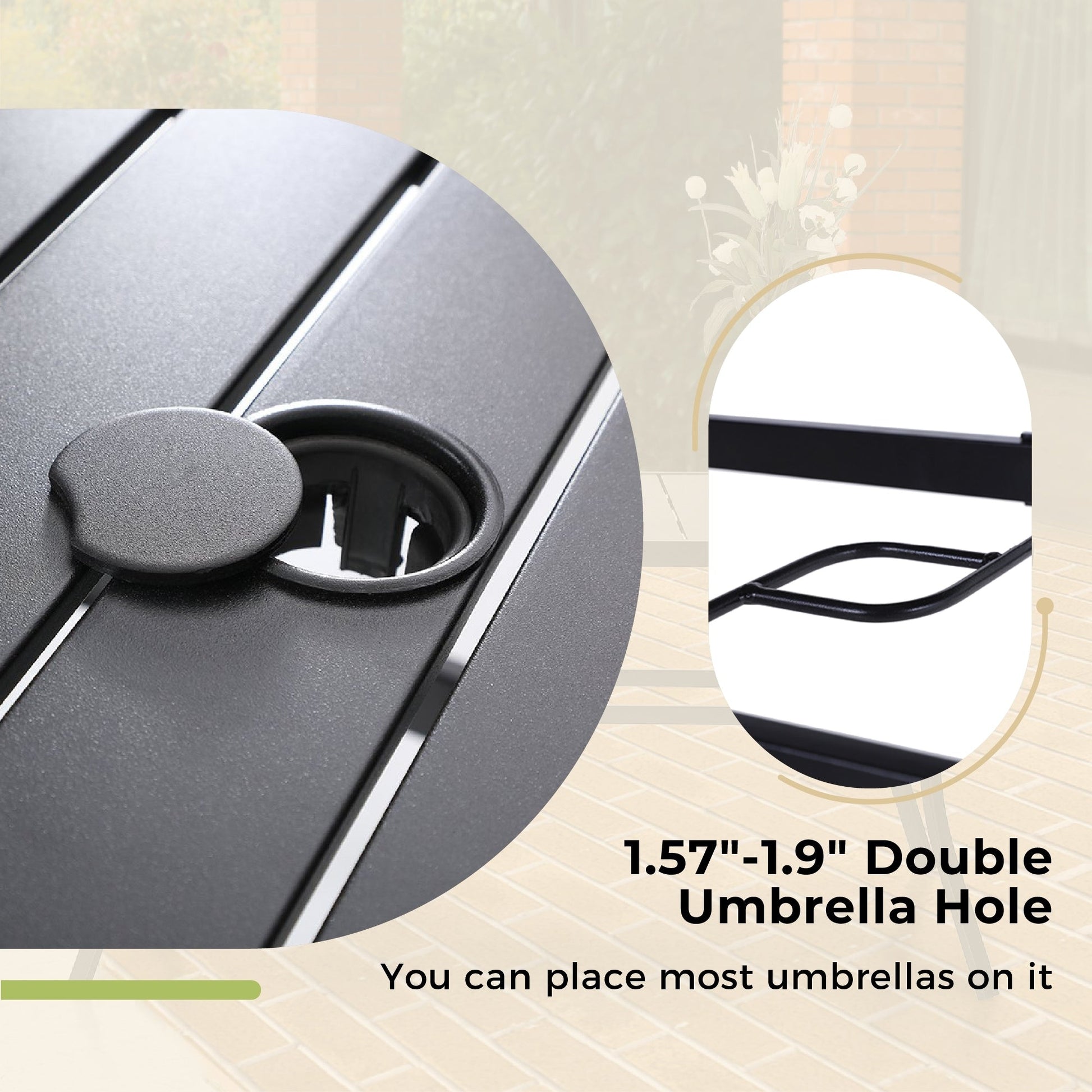 - 【Mutiple Using Positions】: Patio dining set with umbrella provides wide coverage from the sun and keeps you comfortable and cool under the canopy which is ideal for your family and friends at the courtyard, beach, or swimming pool. The vents of the umbrella also ensure better stability and safety in use.